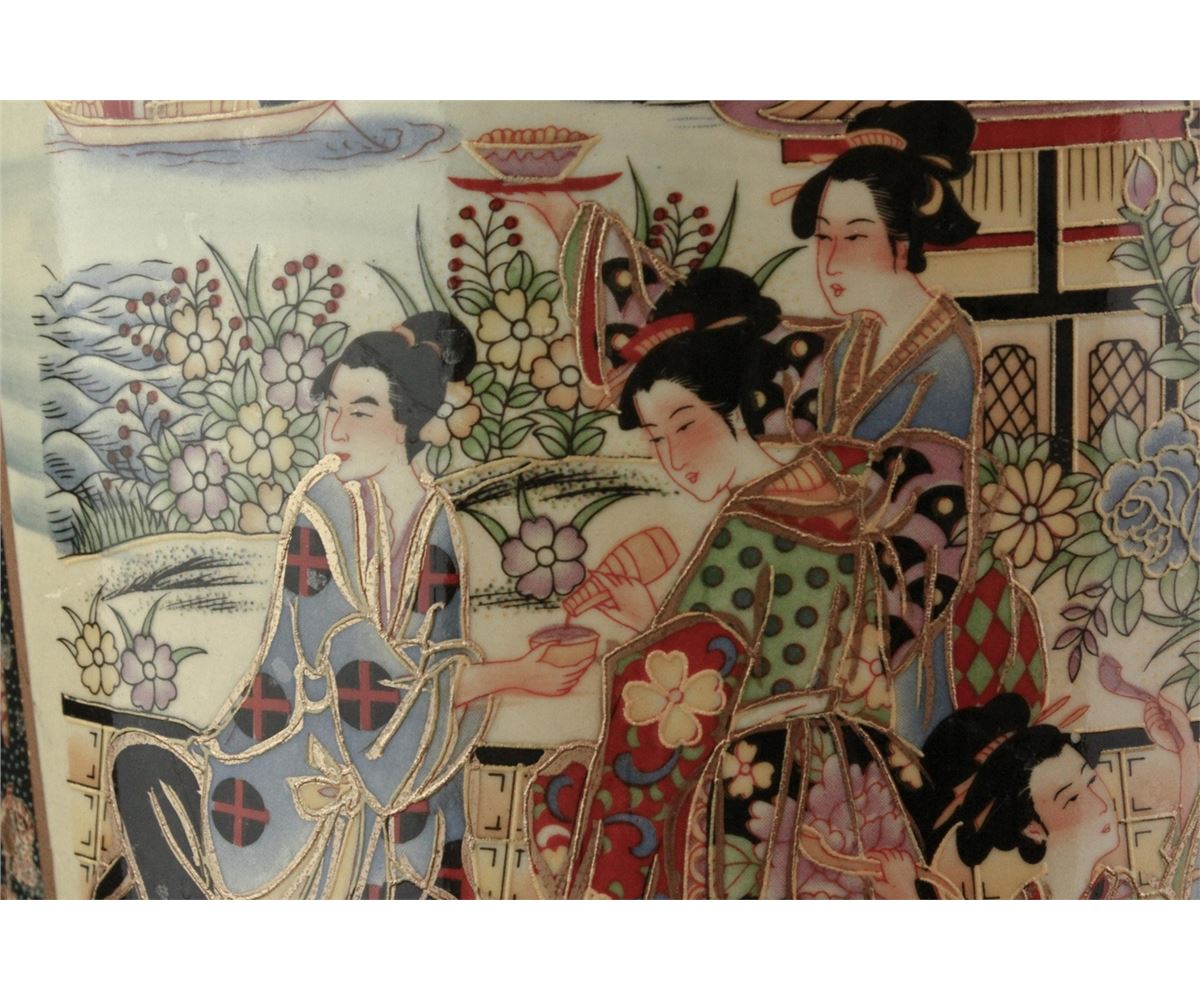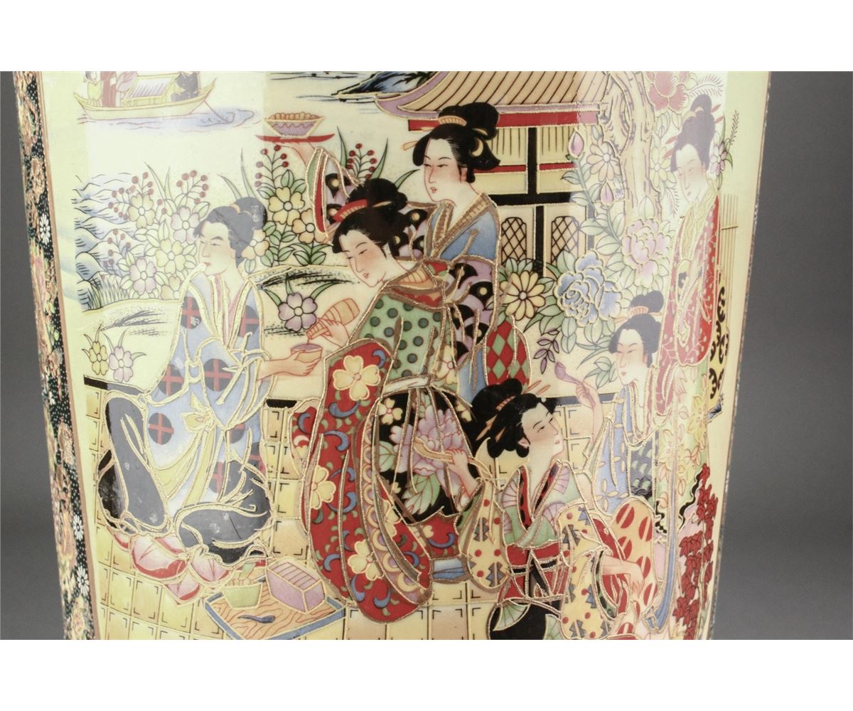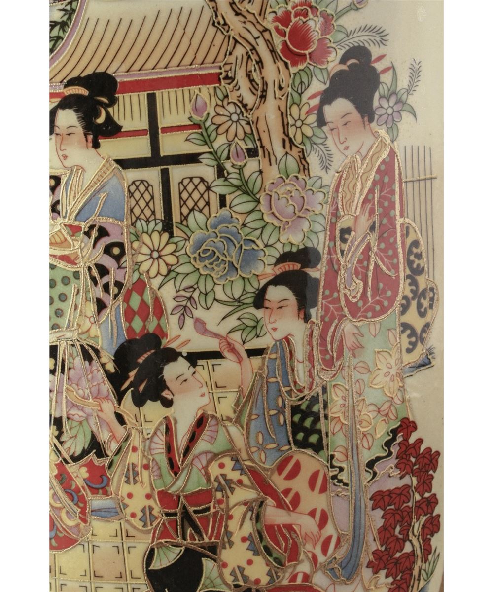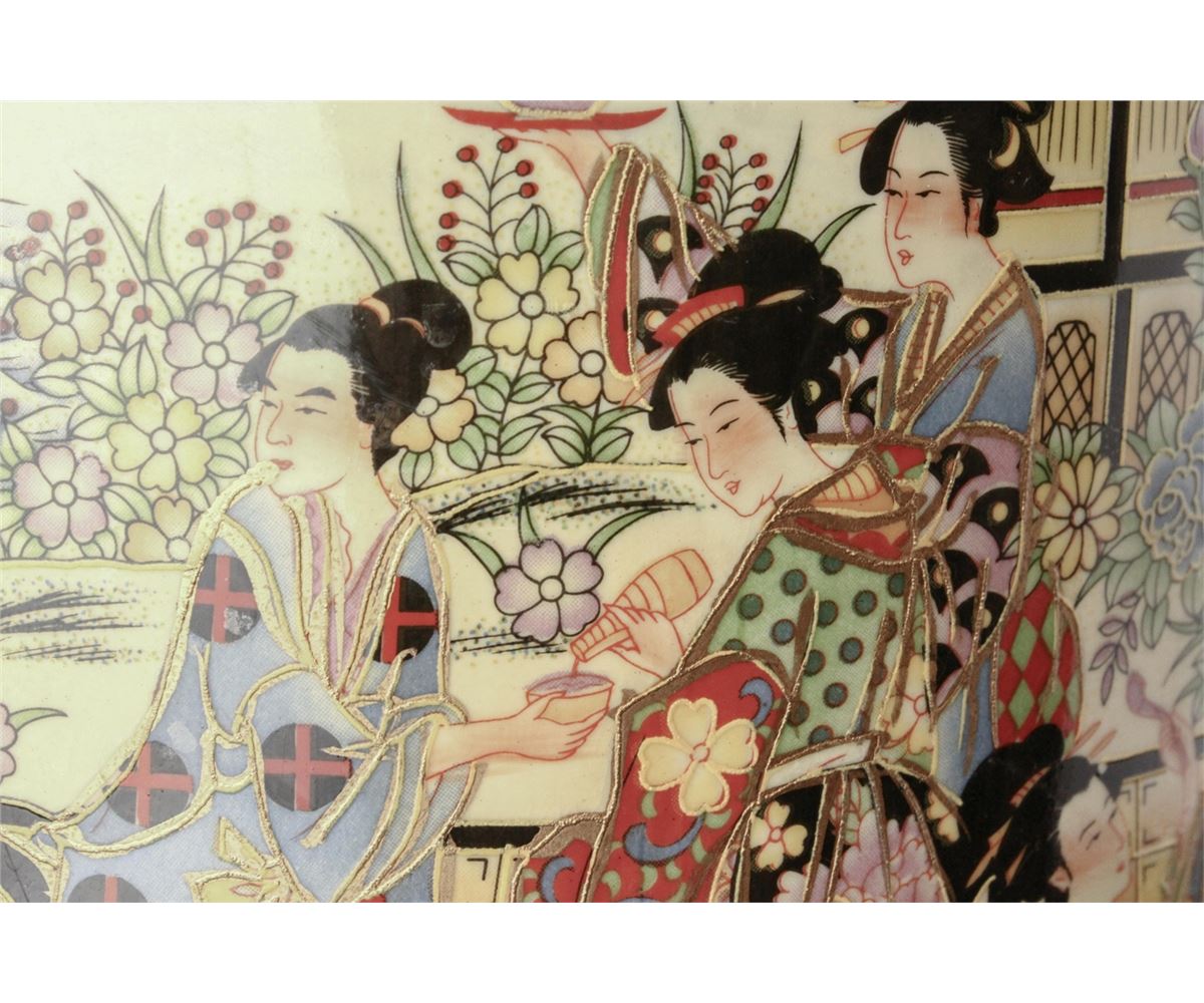 Japanese large porcelain bucket; featuring gilt drawings of women in kimono on body; W: 26.5 cm, H: 52 cm, 7000 grams