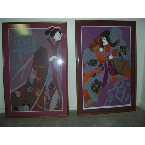 Antique Japanese prints in very large frames in ezxcellent signed condition.