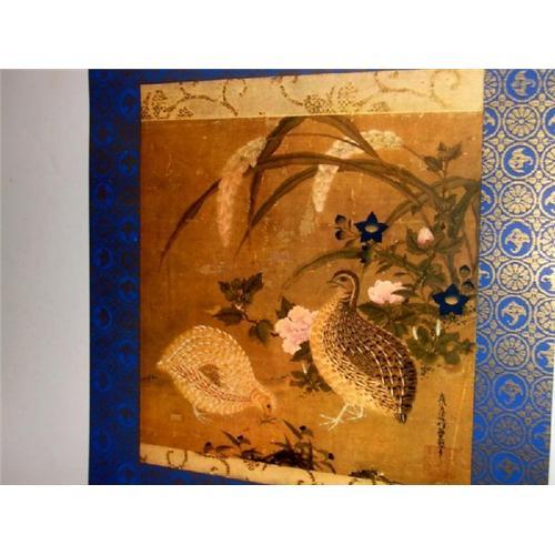 This beautiful 1964 New York Graphics Society Ltd. Print is available from an N. C. auction of prints. The title is Quails and Flowers. It was offered in 1964 by the Museum of Asiatic Art in Rjksmuseum, Amsterdam. It was printed in Holland. The border around the print is a blue and gold stamped cut which makes a gorgeous matting. The quail picture is 11 1/2 x 13. Including the border it measures 16x16. The entire print including the white exterior border measures 25 3/4 x 25 3/4. In one of the pictures you can see the signature of the artist. <p>