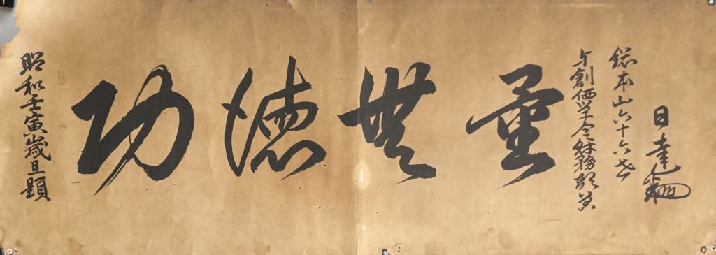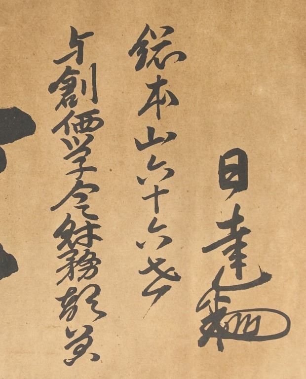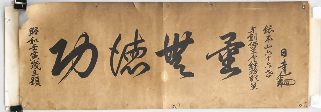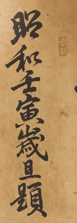 Japanese print on paper. Featuring calligraphy. 35 x 100 cm. Provenance: Private collection, Philippines
