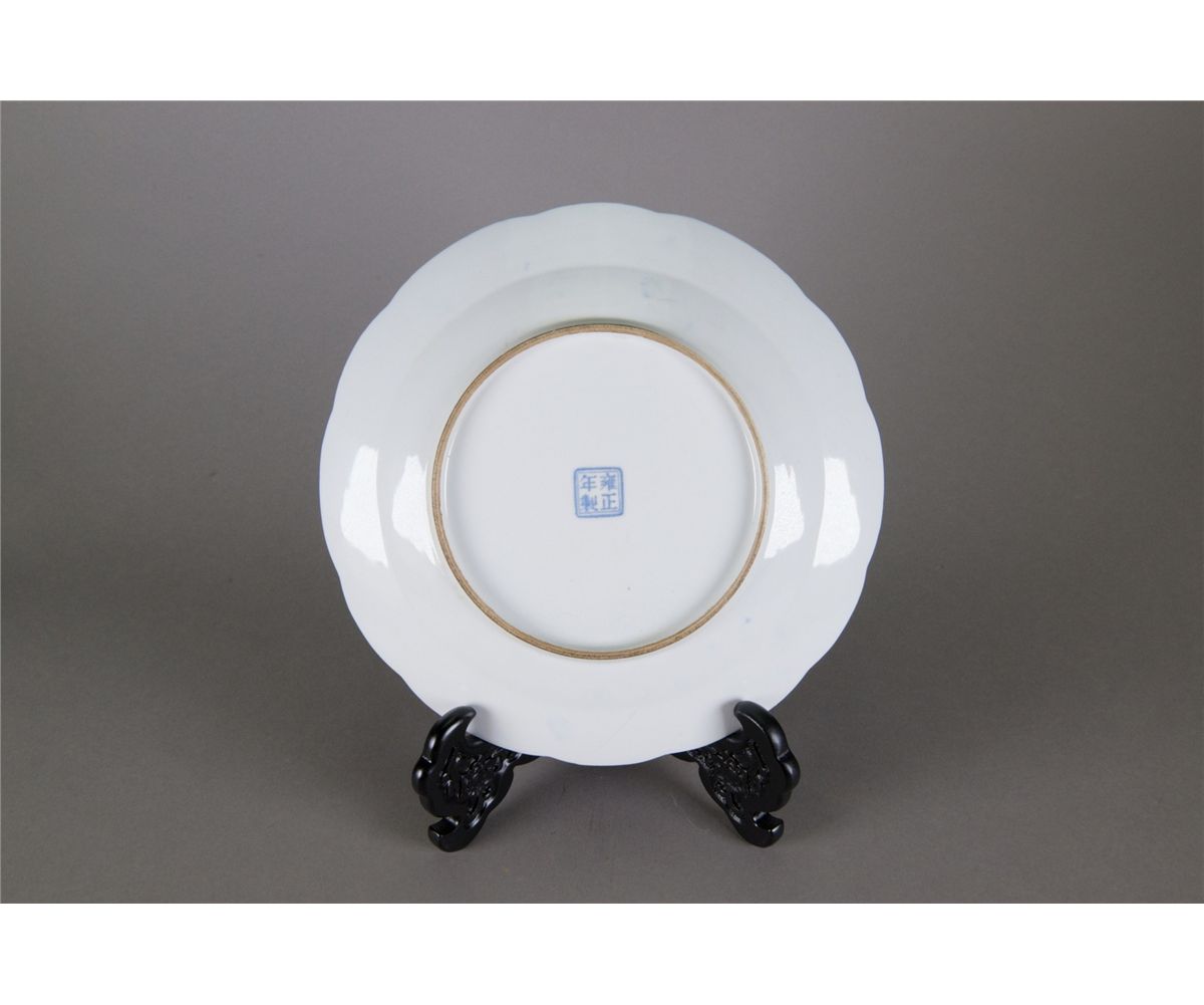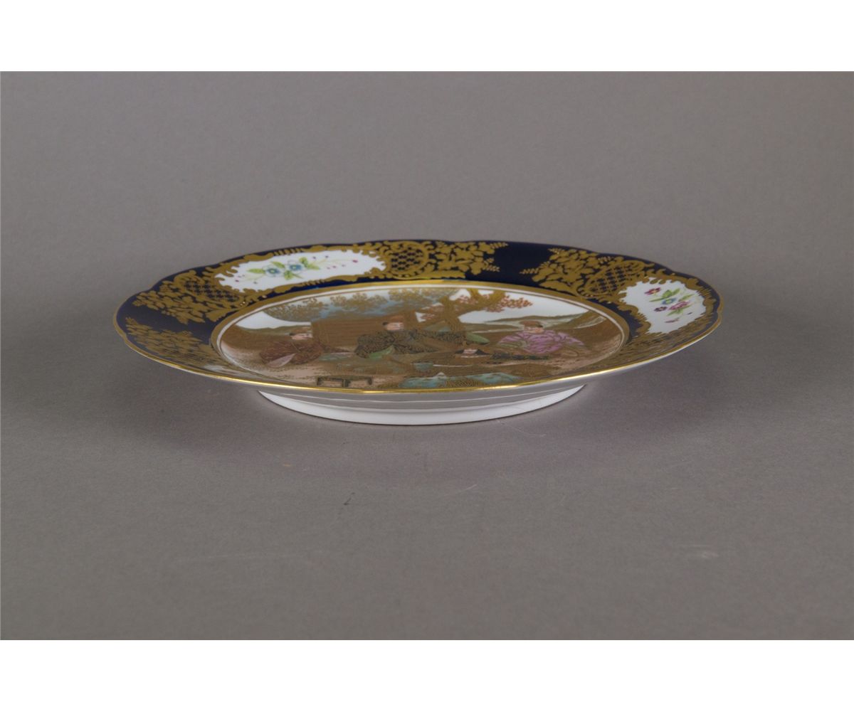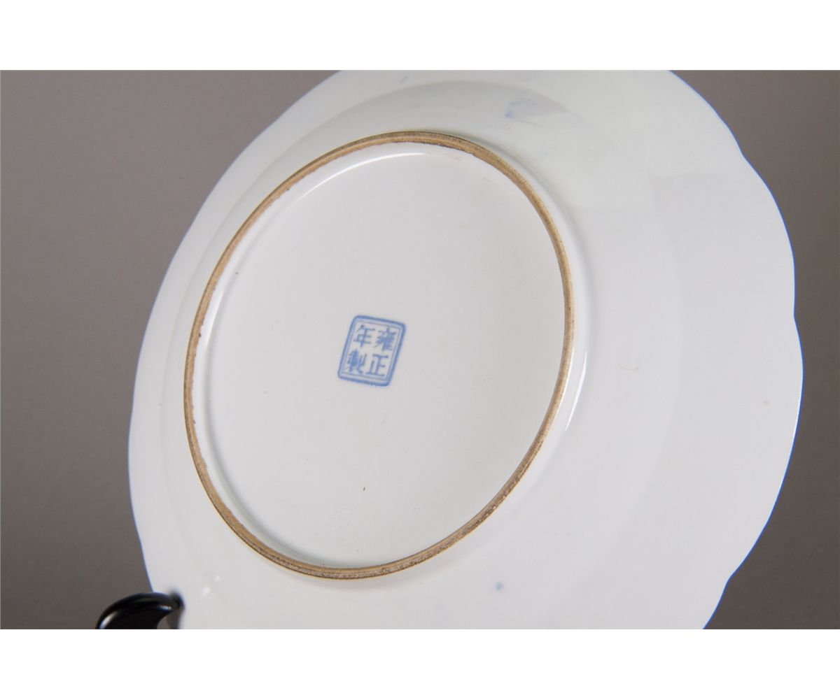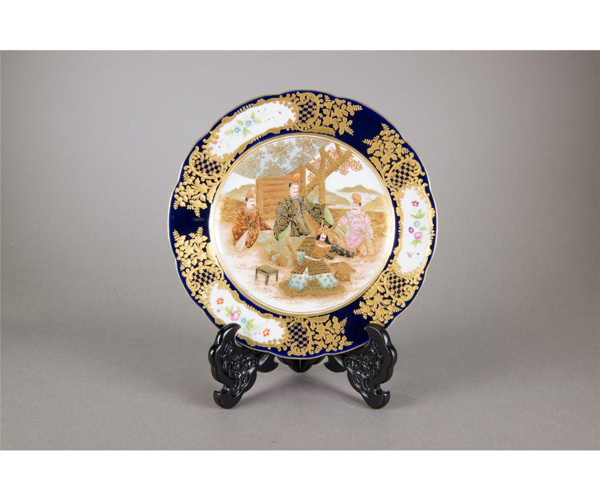 Japanese Satsuma gilt plate; of foliated edge; supported on short foot rim; featuring Japanese emperor and warrior; D: 24 cm, 507 grams