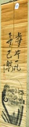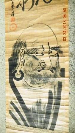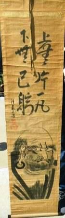 Japanese Scroll - Durma of a mans head Circa 1900 in good condition, signed and measures 6 feet by 1 1/2 feet. Condition Good, Shipping $20.00