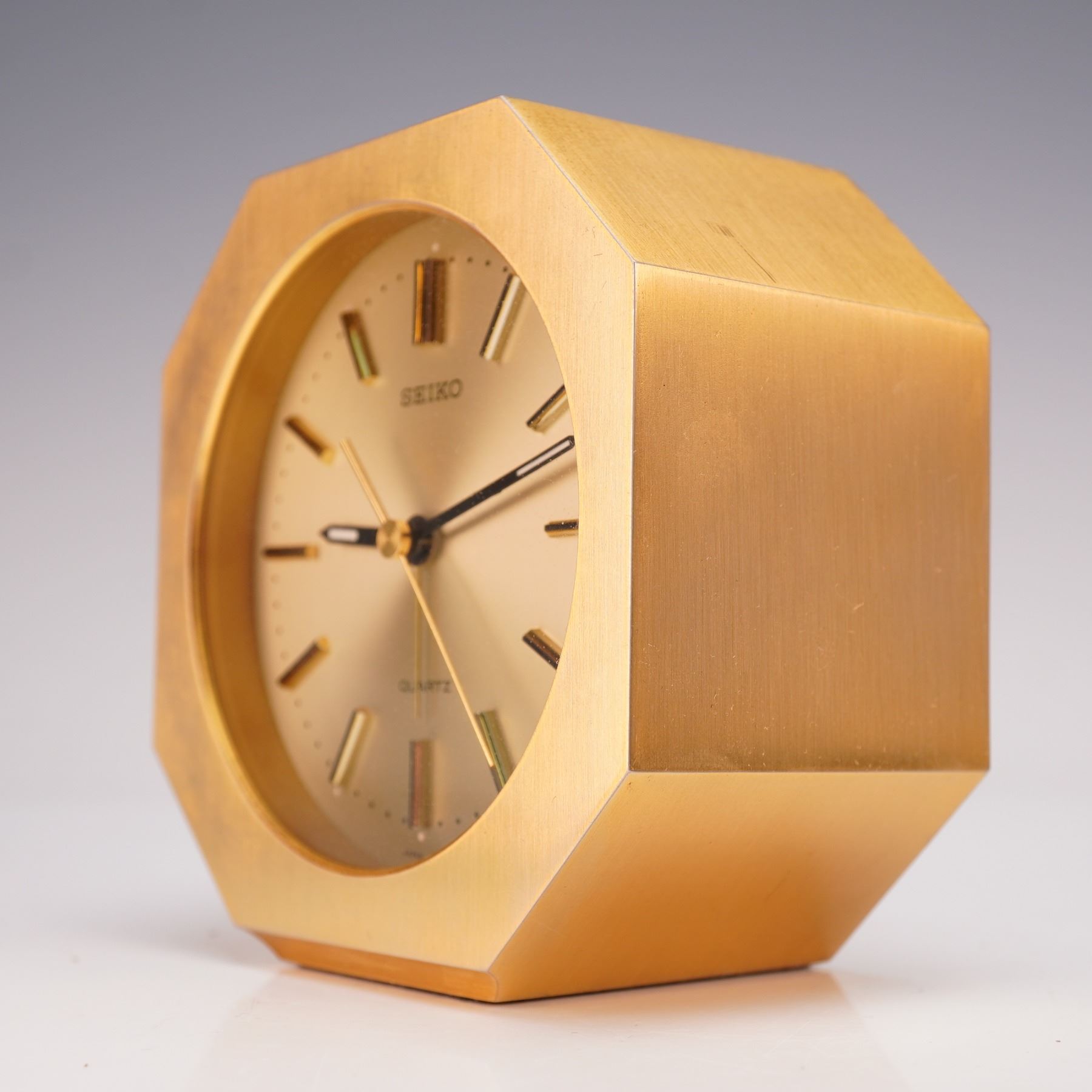 Japanese Seiko Quartz Alarm Clock, Gold Tone Octagonal