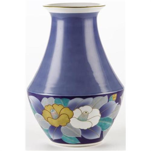<B>Japanese Studio Porcelain Vase<BR></B></I>Unknown maker<BR>Twentieth Century<BR>The Japanese porcelain studio vase of angular baluster form, the white everted rim above a pale blue body, surmounting a cobalt ground with designs of gilt and tonal blue flowers.<BR>Blue makers mark to the underside<BR>11.7 inches high x 8.5 inch diameter<BR><BR><b>Shipping:</b> Requires 3rd Party Shipping (<a target="_blank" href="http://www.heritageauctions.com/common/shipping.php">view shipping information</a>)