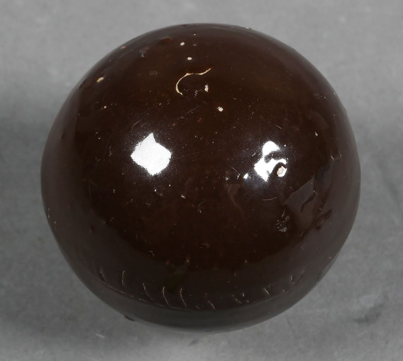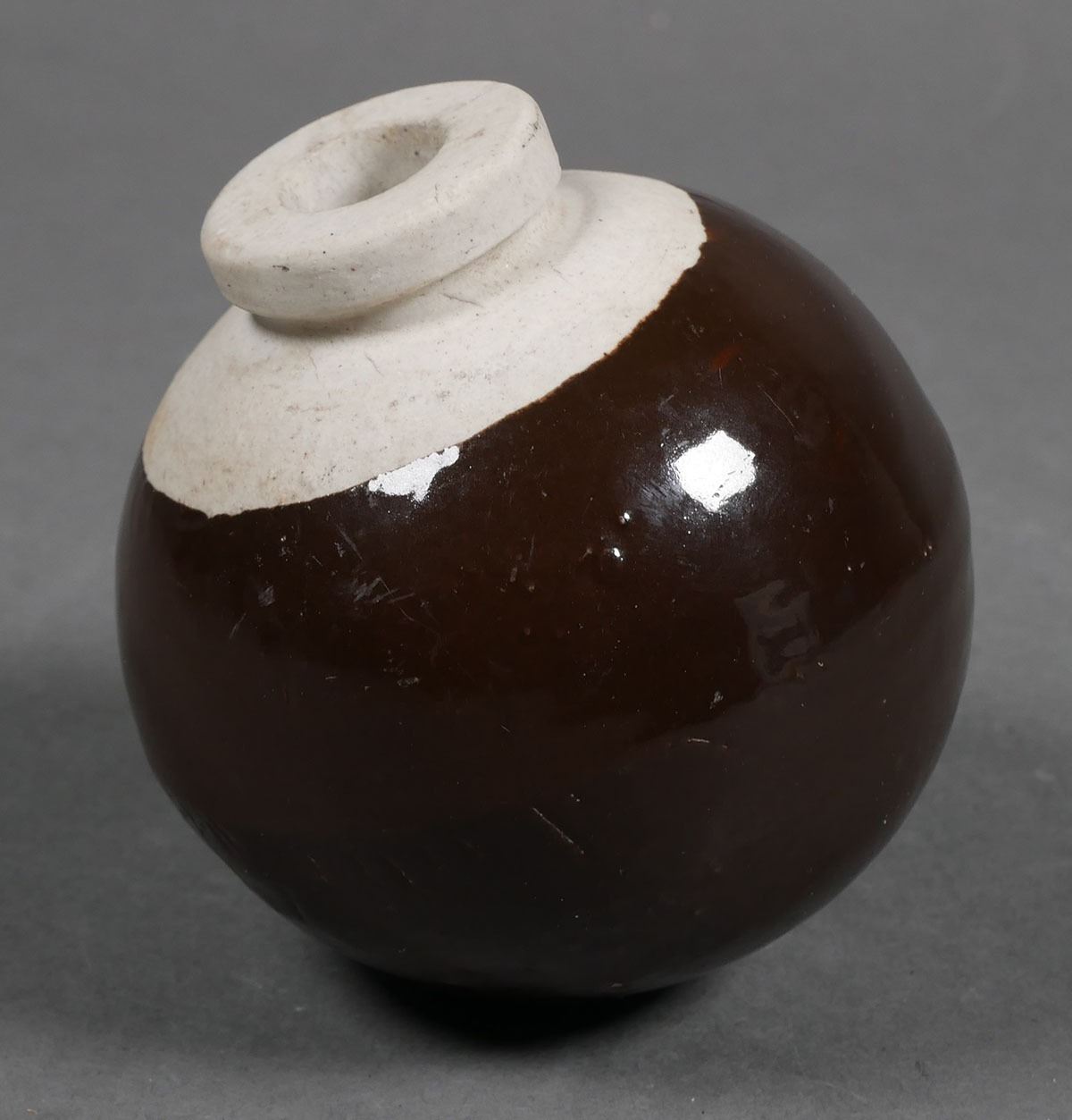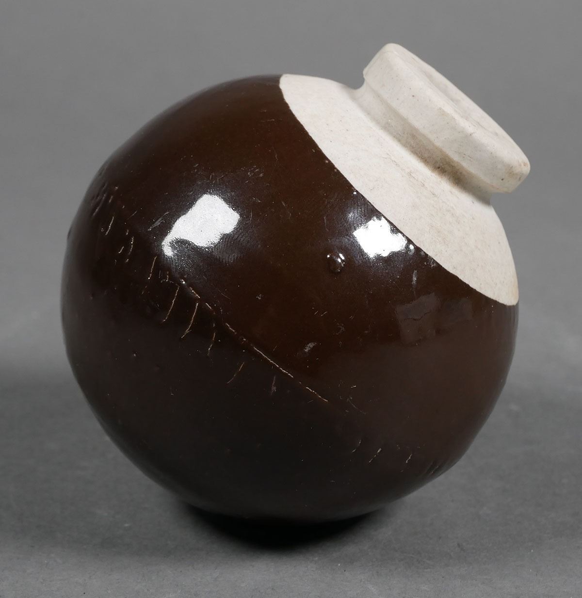 Inert Japanese Type 4 ceramic fragmentation grenade with brown glaze. Approx. 3 1/4" tall x 3" diameter. WWII Japanese Type 4 hand grenades, commonly known as the Ceramic Grenade were made at the latter stages of WW2 (late 1944 onwards) by the Japanese due to a shortage of raw materials. Hairline on rim top. See photos for more details on condition.