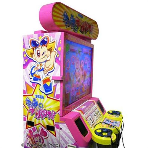 Japanese Tambourine Game - 2 Player tambourine arcade game / Manufactured by Sega 2000. Outside Condition: Fair 2 / Some damage to screen. Controllers are held together with tape / Does not include power cord. (SPA3036)