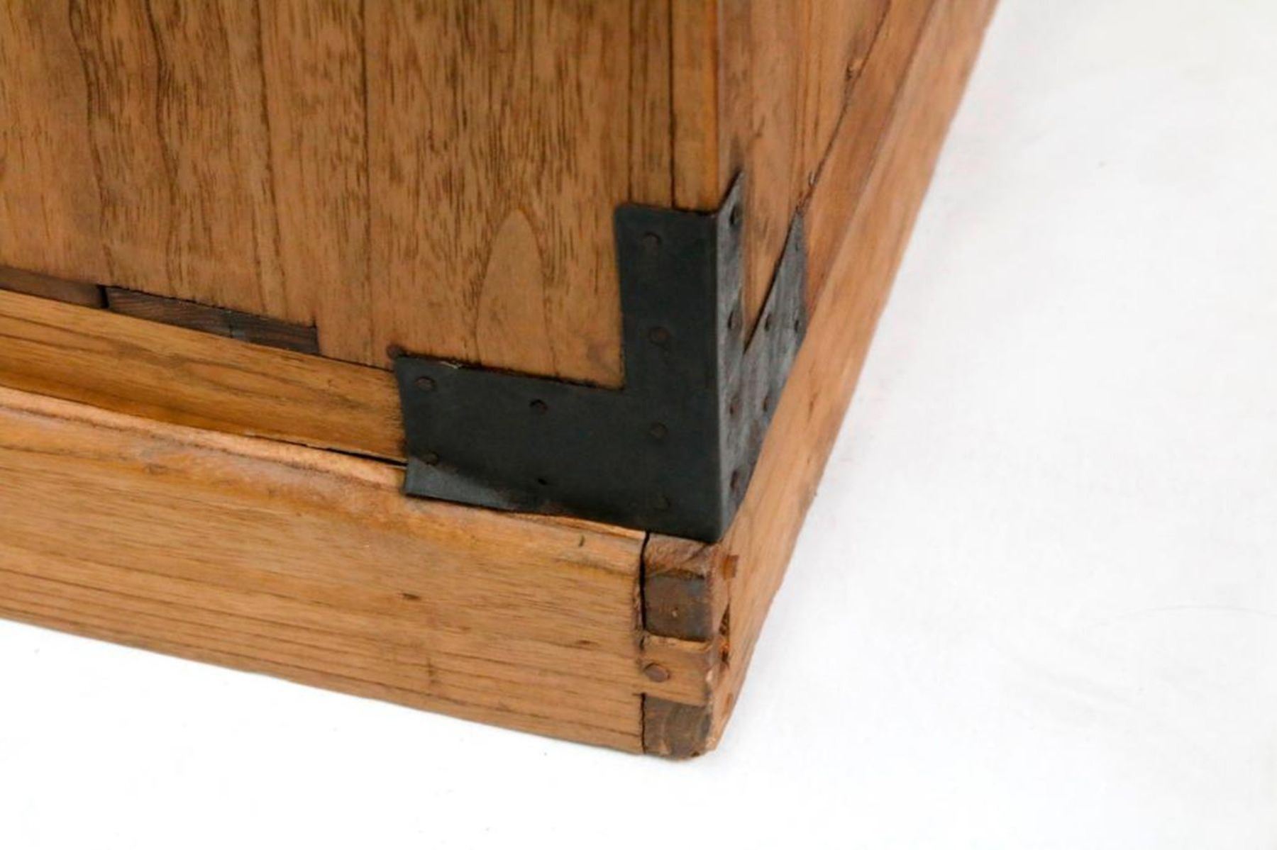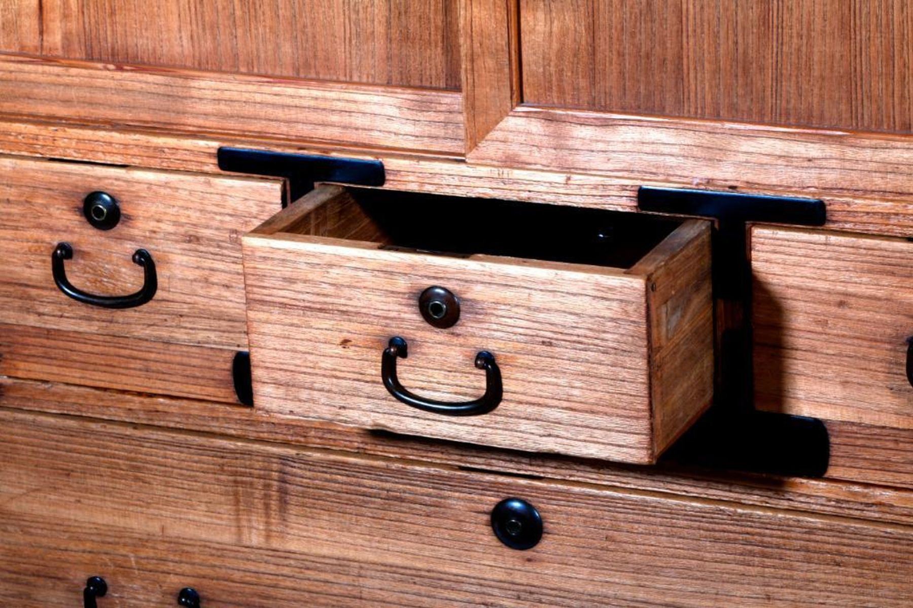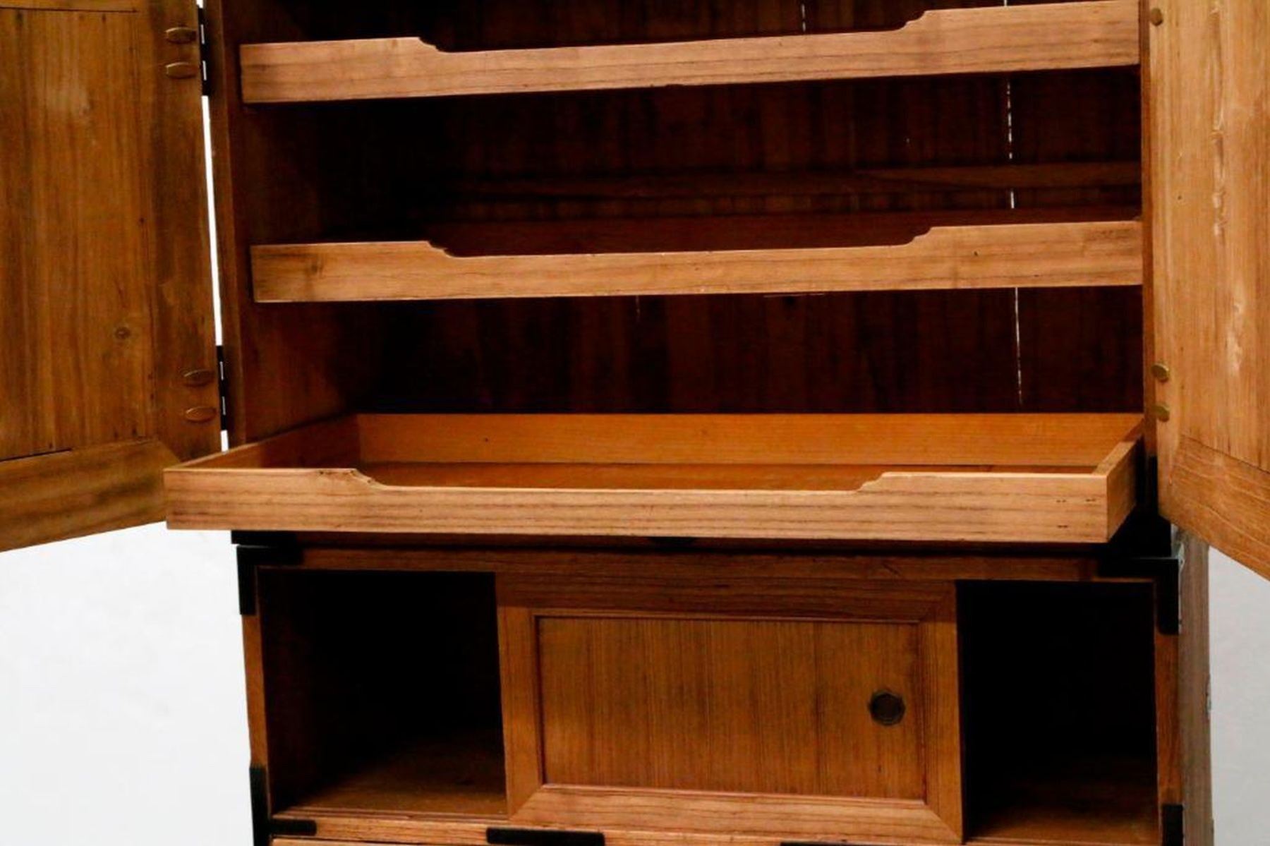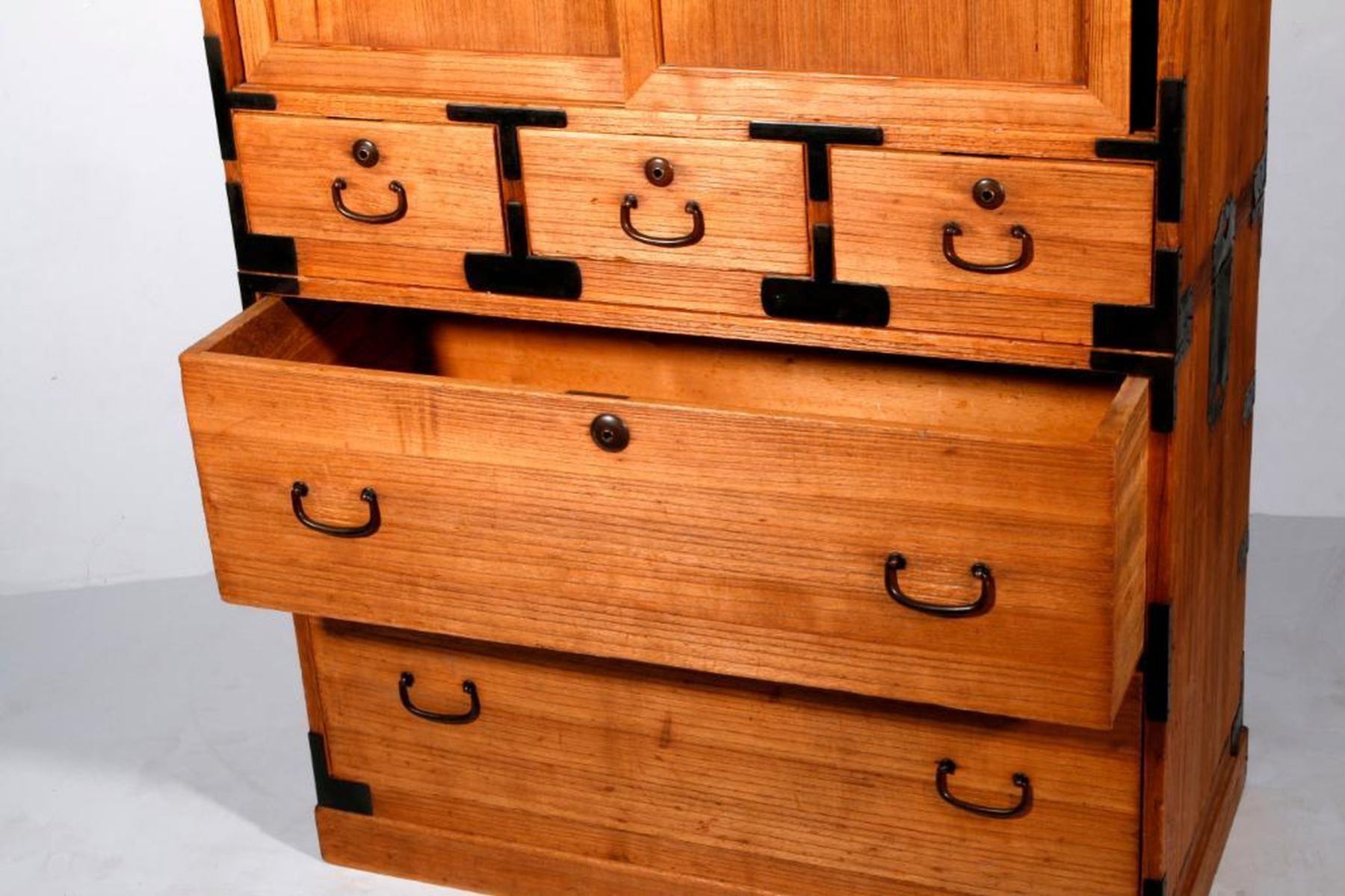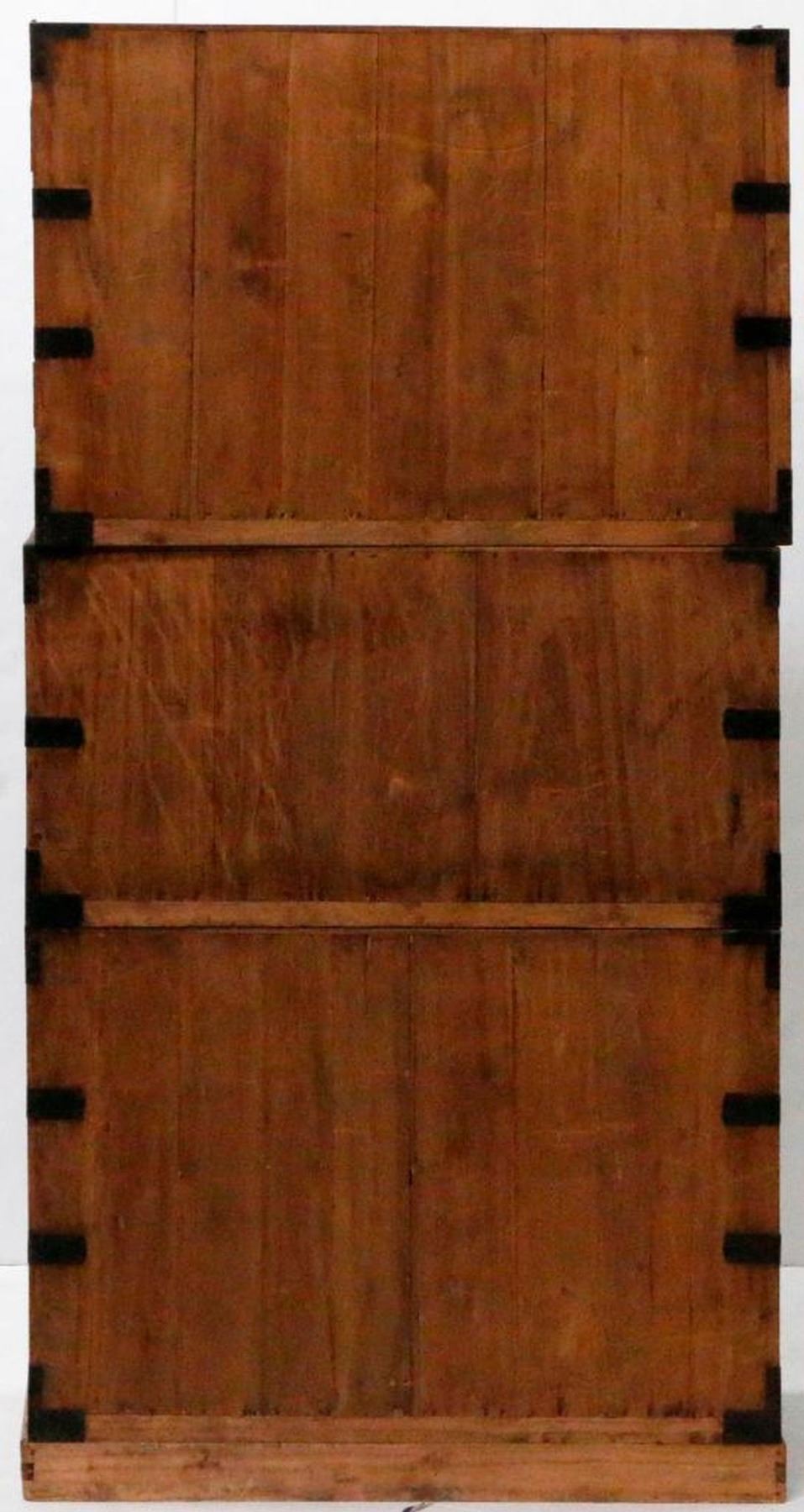 A Three piece Japanese Tansu measuring 66 inches high x 34 1/4 wide x 16 1/2 deep.
