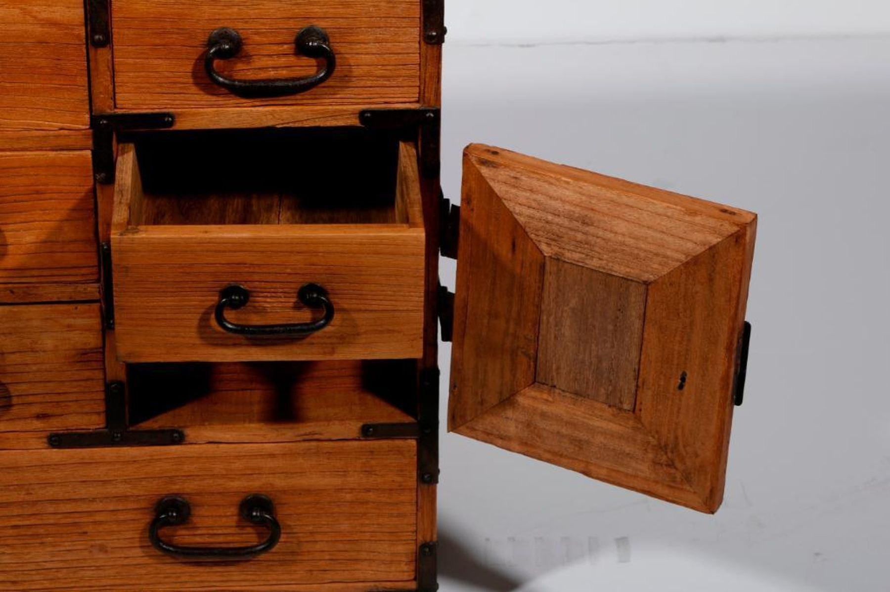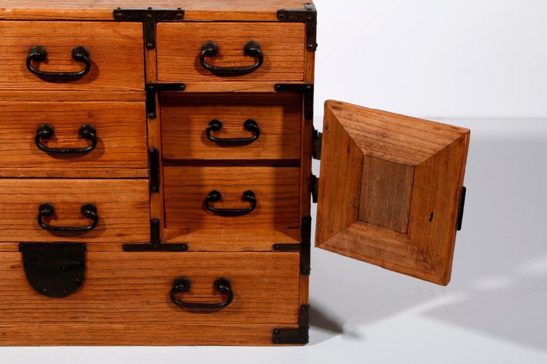 A small sized Japanese Tansu measuring 16 1/2 inches high x 24 1/2 wide x 12 1/2 deep.