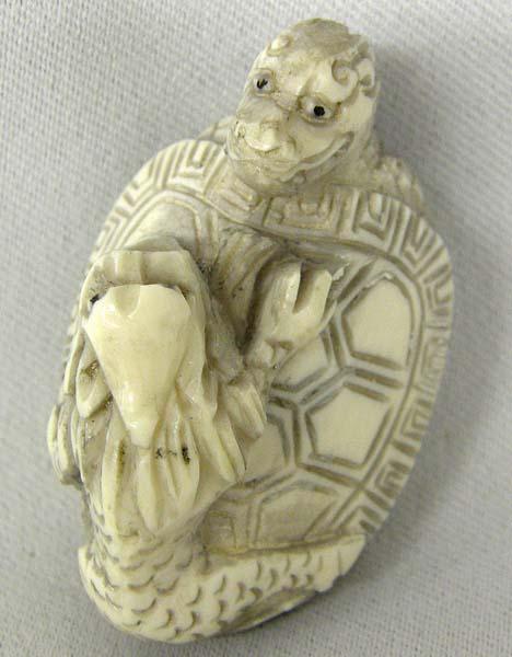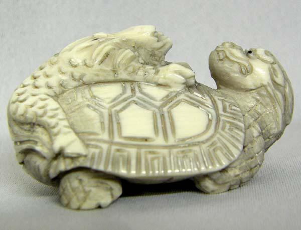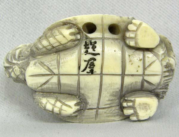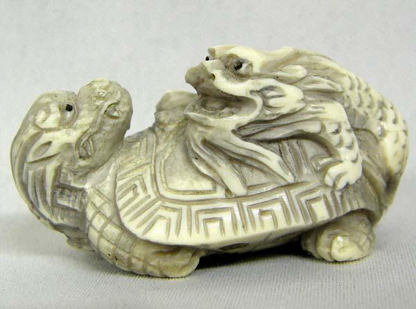 Japanese Turtle and Dragon Netsuke, possibly Ivory, Signed. Measures approx. 1.75''Lx.5''W. Buyers Pay Actual Shipping and Handling Charges(see terms and conditions for more information).