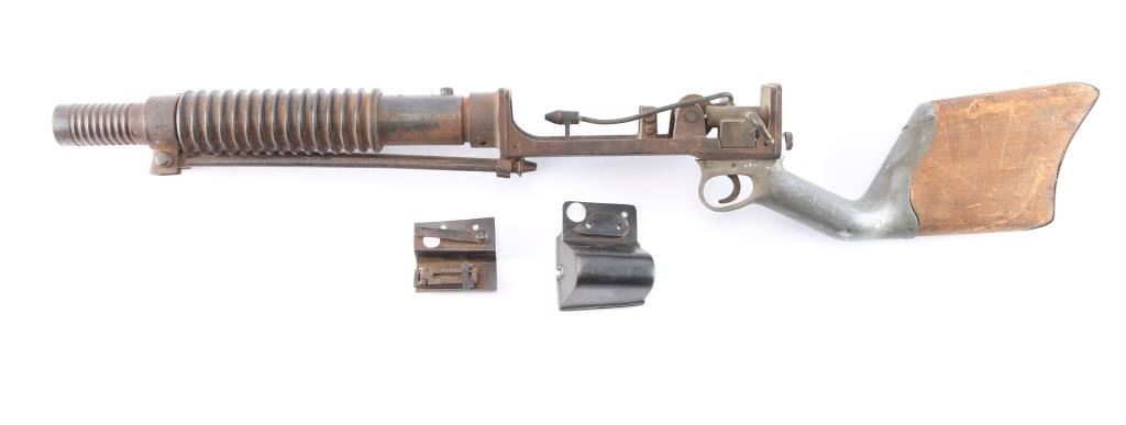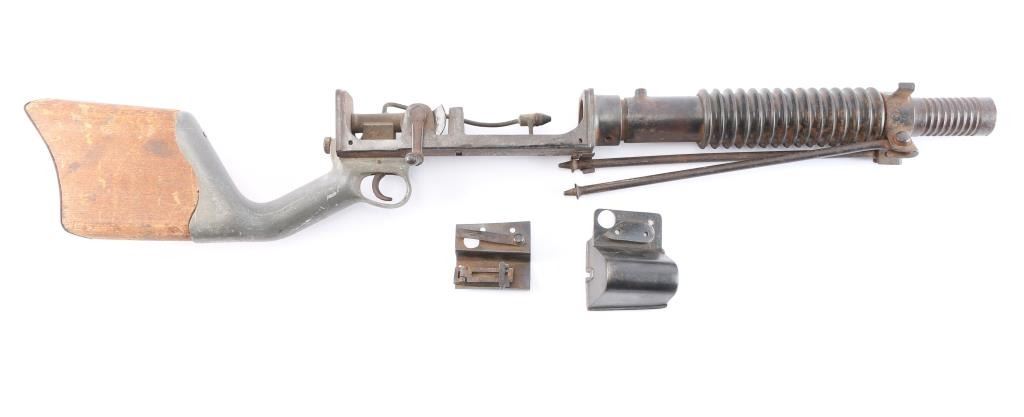 Hand crafted prop made to resemble the Japanese Type 11 SMG. Appears to have shot flames / simulated fired with a hand crank on the right side. Unknown origin. Includes unattached 'hopper' and rear sight.