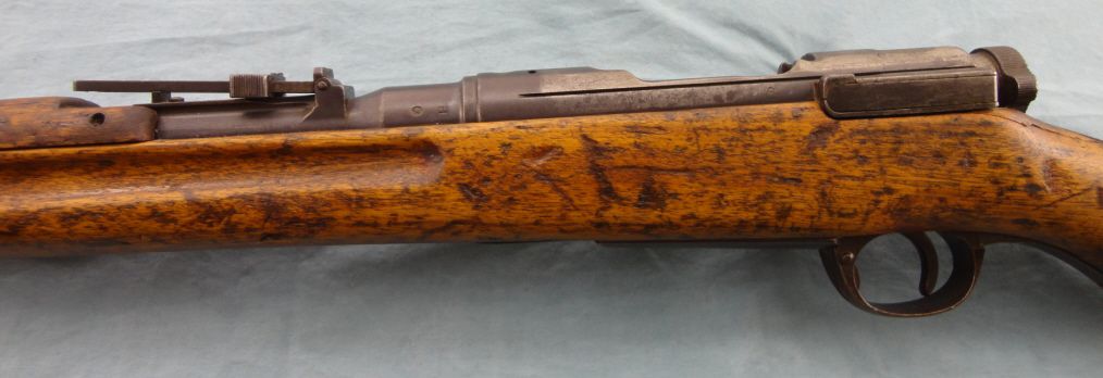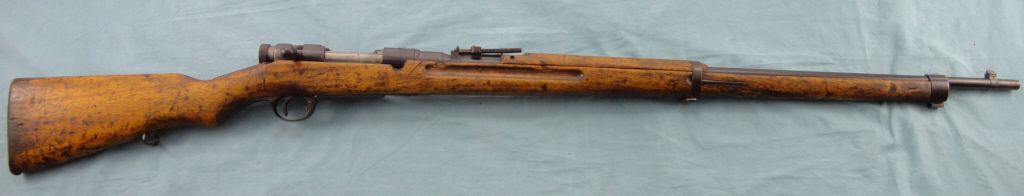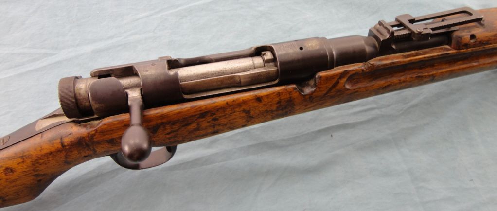 #914299; 6.5 cal. Std. Config. Blue fading to a plum patina. Stock shows heavy use, typical of Type 38 rifles.