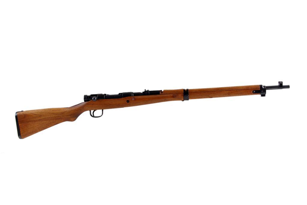 Japanese Type 99 Cal 7.7mm SN: 10094 Japanese military rifle in original condition. Blued finish, smooth wood full length 2 piece stock with grooved fore arm and hand guard, sling swivels installed but no sling, 26" barrel with military ladder style rearJapanese military rifle in original condition. Blued finish, smooth wood full length 2 piece stock with grooved fore arm and hand guard, sling swivels installed but no sling, 26" barrel with military ladder style rear sight, chrysanthemum on receiver is partially mutilated but still visible, good bore and action. Condition: Excellent, could be unused from war or a very good restoration. Either way it looks real good!