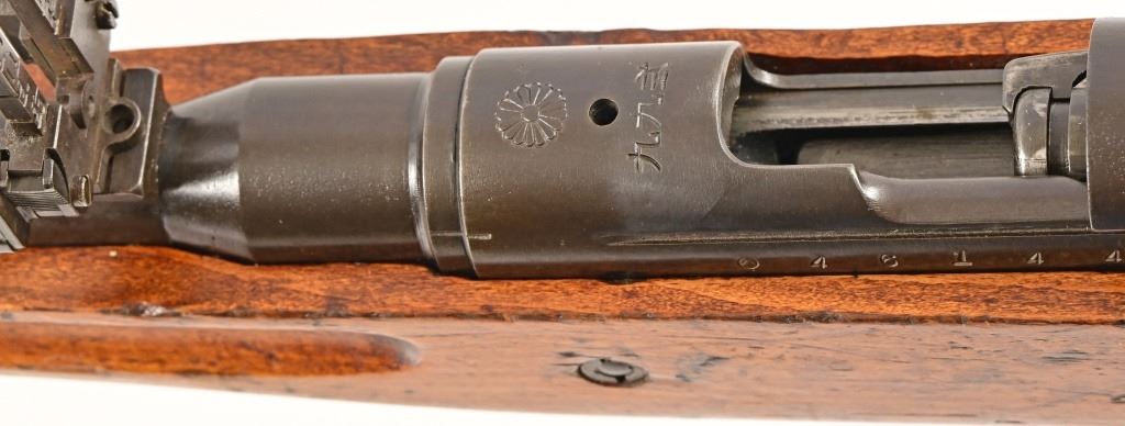 SN 46144. Arisaka rifle with 26" barrel, good bore. Full Mum, dust cover, folding bipod. Working action. Wood is solid with nicks and scuffs. Nice model 99 example. Modern.