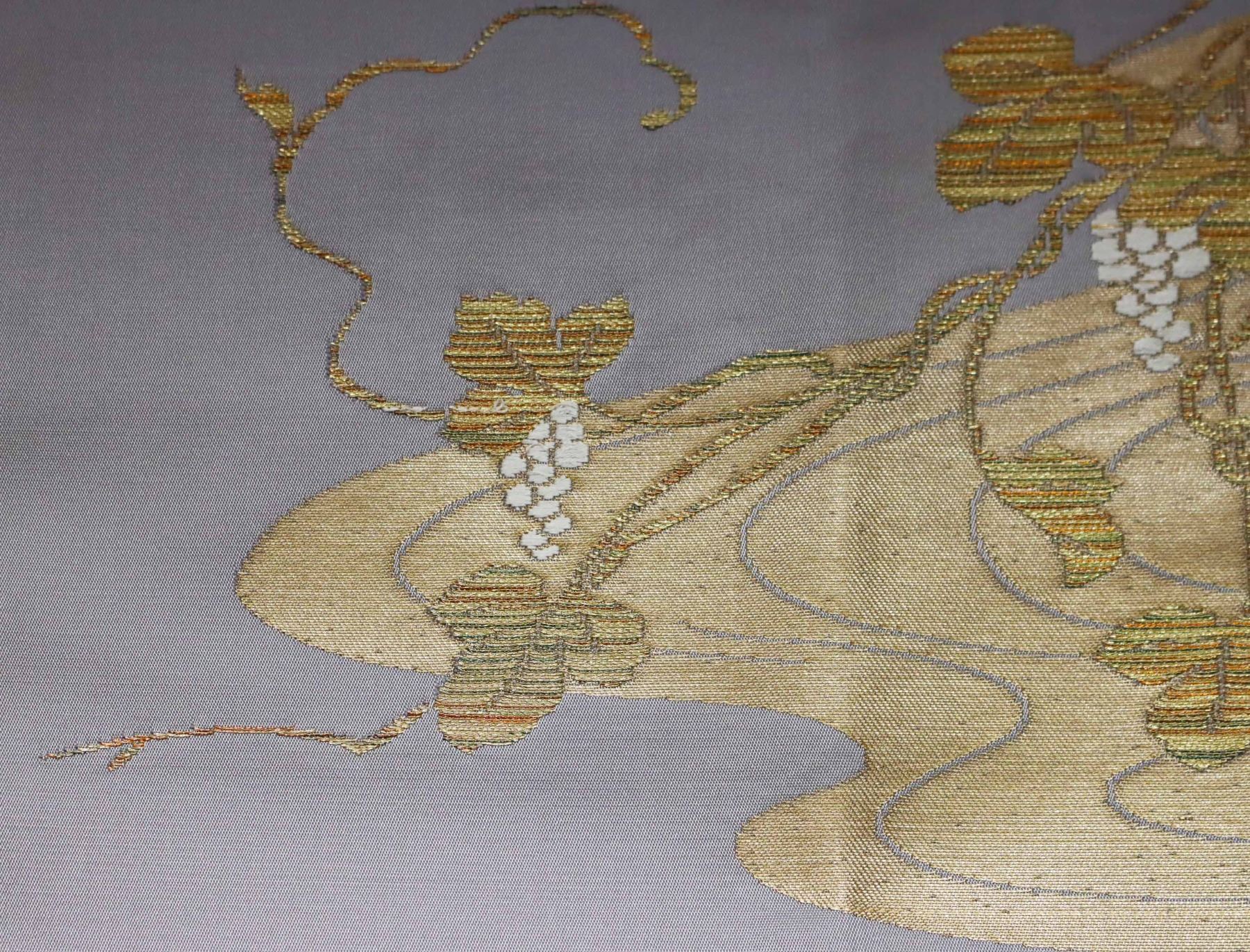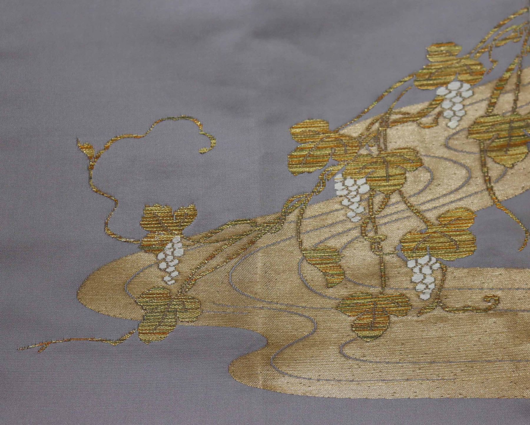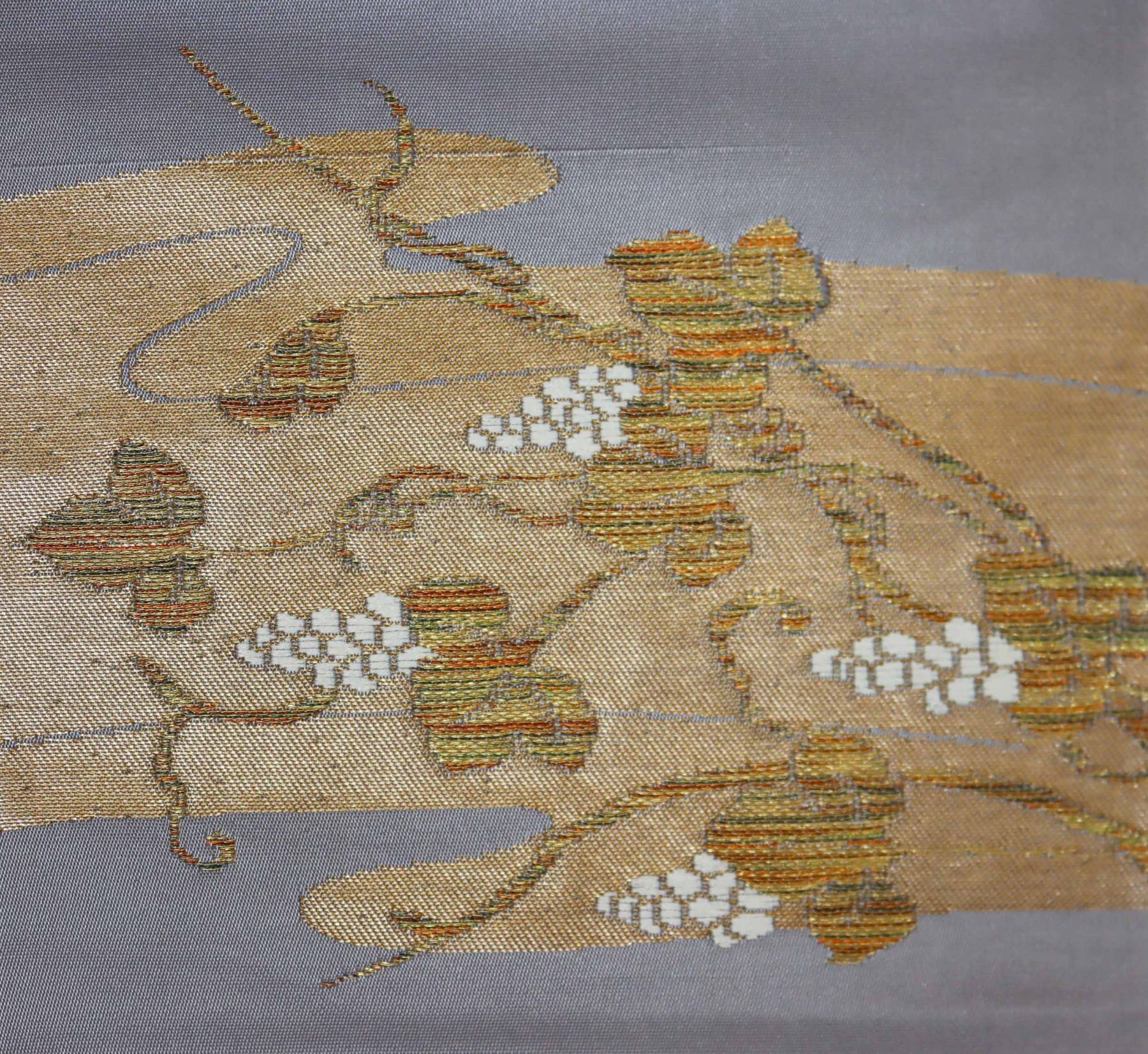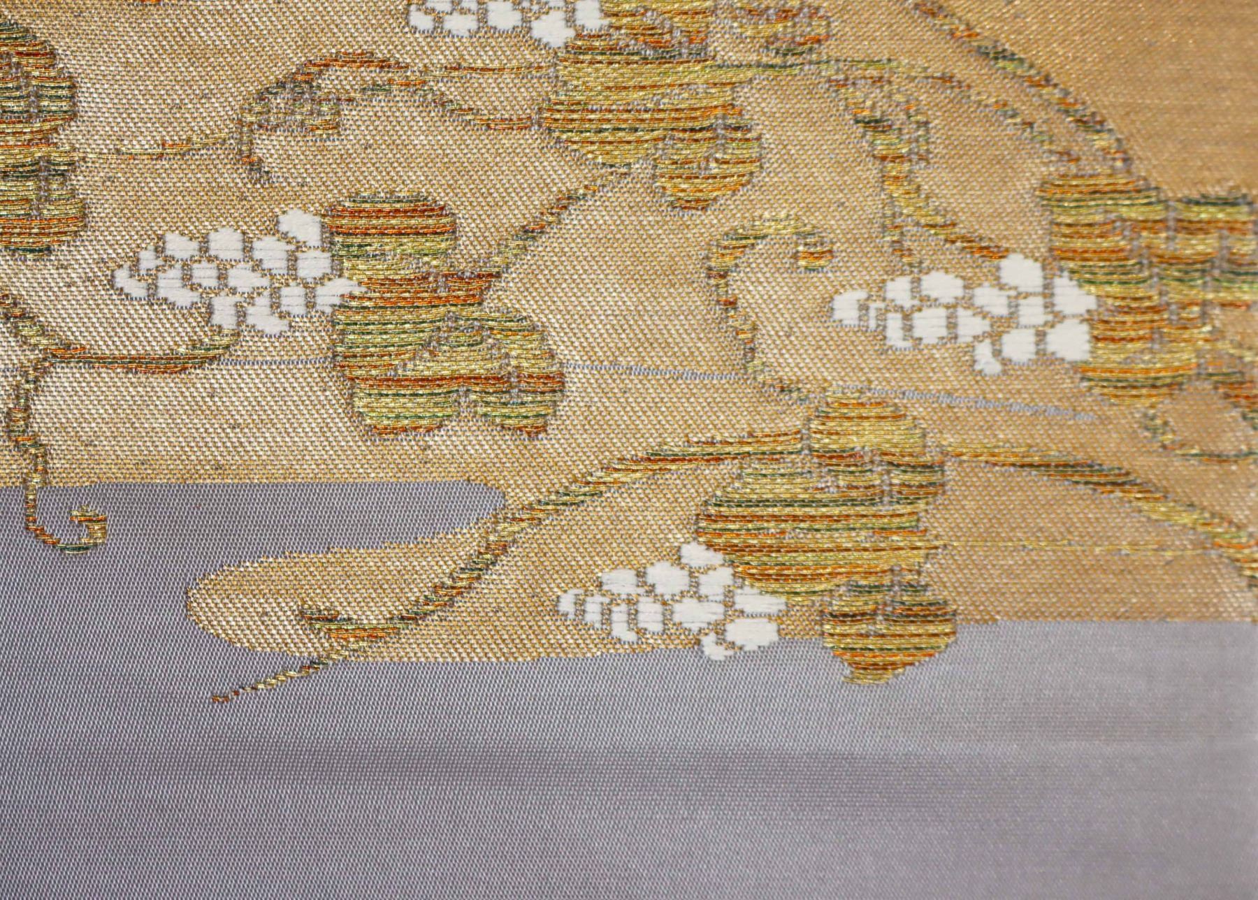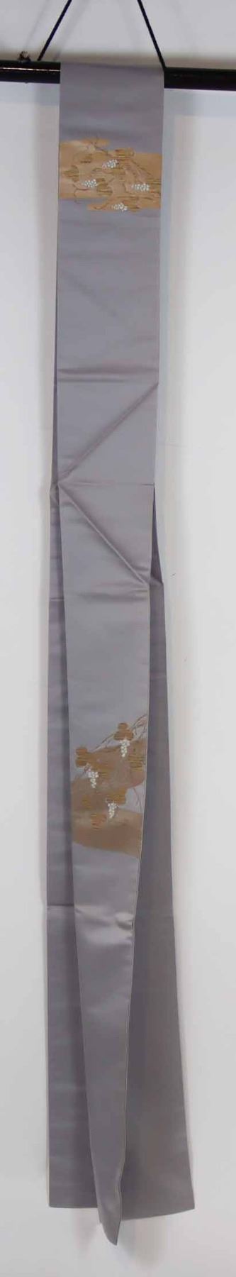 Japanese vintage obi in blue and gold with embroidery. The size is 136 in long x 6 in.
