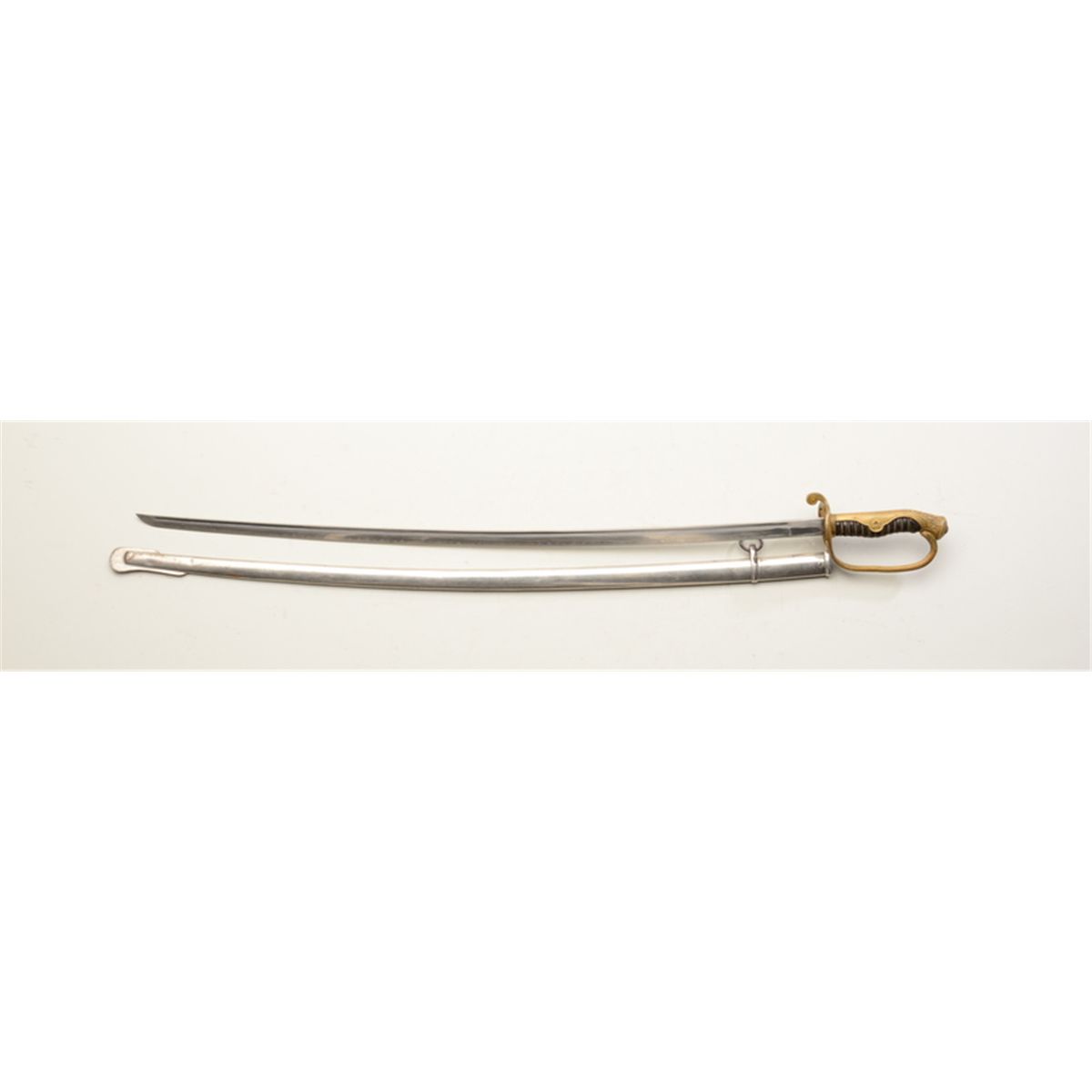 Japanese WW II era sword and scabbard in overall good condition with plain blade, brass guard and pommel and wire wrapped grip; uncleaned. Est.: $100-$200.