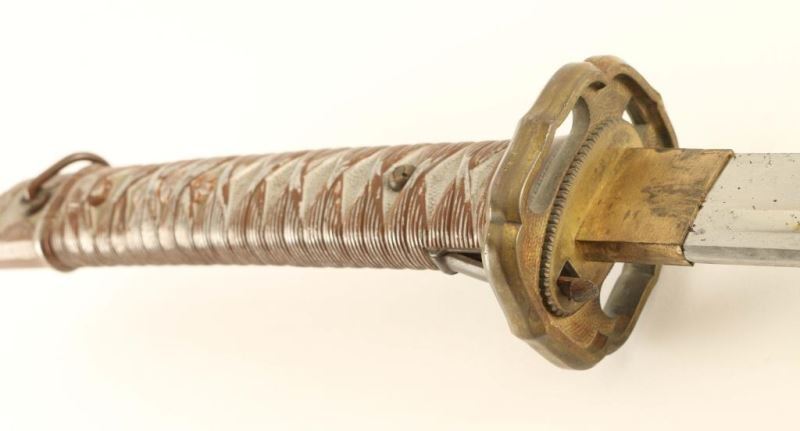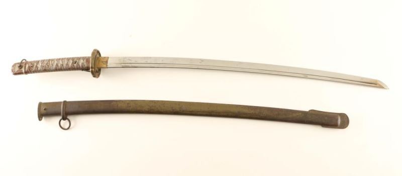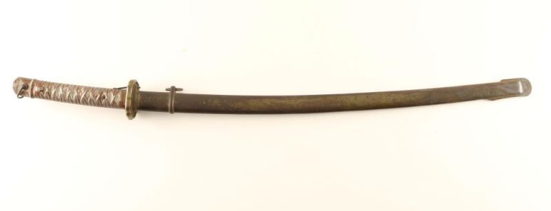 Aluminum hilt, miss matched scabbard, blade measure 27 1/2". Some original paint on scabbard remains, paint on hilt is scattered. Good blade no nicks. conflict Japanese branch WWII Type 95 item NCO Sword