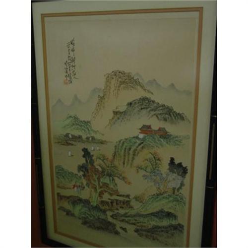 Double matted and framed in black bamboo style frame w/gold accents. This was purchased in Japan in the mid 40's. In very good to excellent condition. I am listing another that was purchased at the same time & place and then framed to match. Please furnish zip code for shipping quote. Thanks!