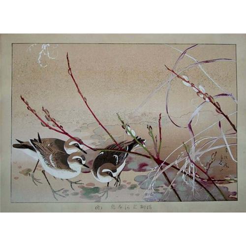 Fine Japanese woodblock print signed Rakusan. Rakusan Tsuchiya (1896-1976) was a Japanese painter and woodblock print artist. This print belong to Rakusan's 100 Series (number 83) and depicts three small birds. It is signed Rakusan and identified by titles in Japanese, signatures in both English and Japanese, watermarks and a faded red seal, known as seal B, used in the third edition. The watermark corresponds to the third edition (1947-1955) as well. One of a pair listed separately (other print is from the same series, No. 2). In very good used condition as shown with toning consistent with age. Please ask questions, request additional photos and shipping costs before buying.