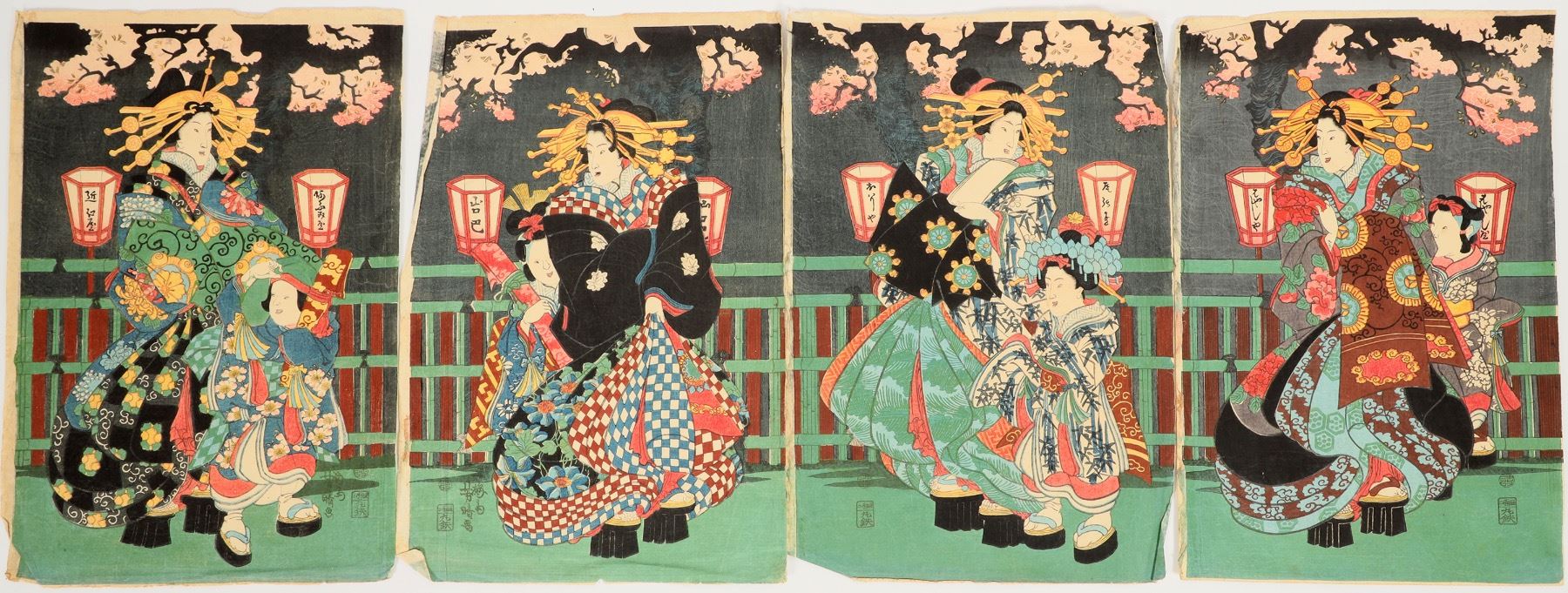 Early Japanese Loose Woodblock Prints c.1890 by Kunchika and possibly others.