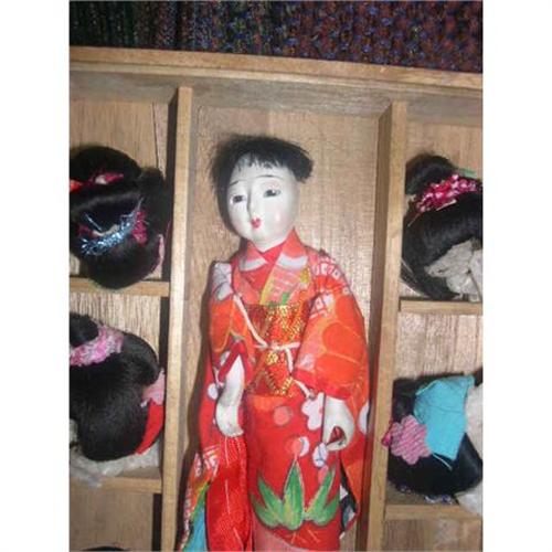<tr><td>Title:Japanese doll in wooden box with 6 wigs</td></tr>