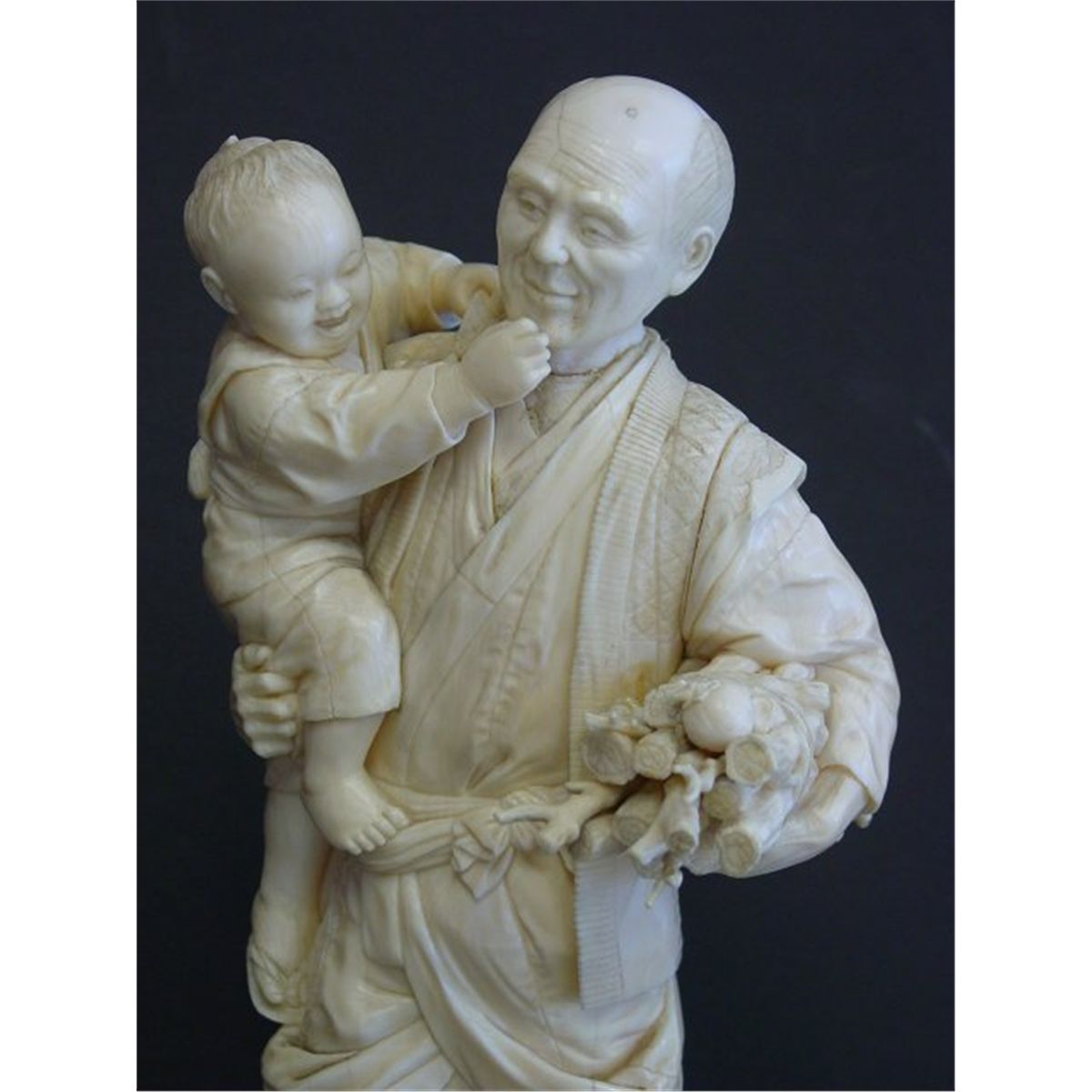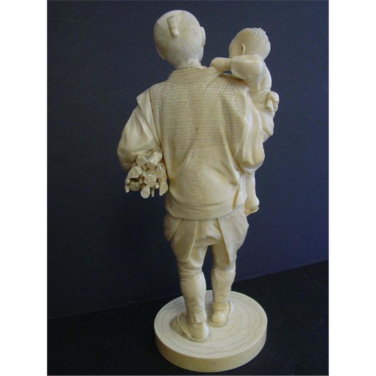 "Father & Son Carrying Wood Kindling". Approx. 10.5" H. Please read our terms of sale.