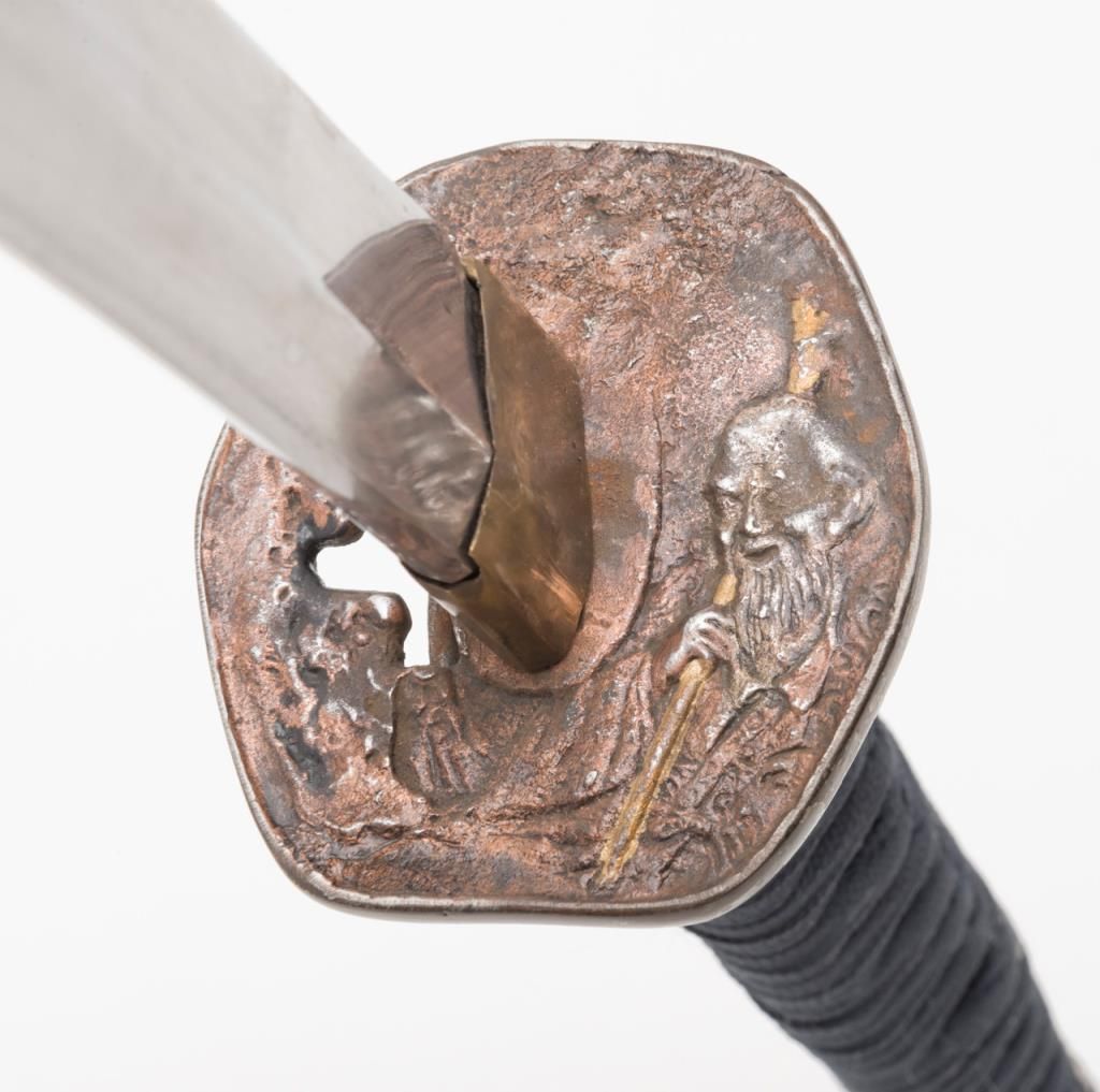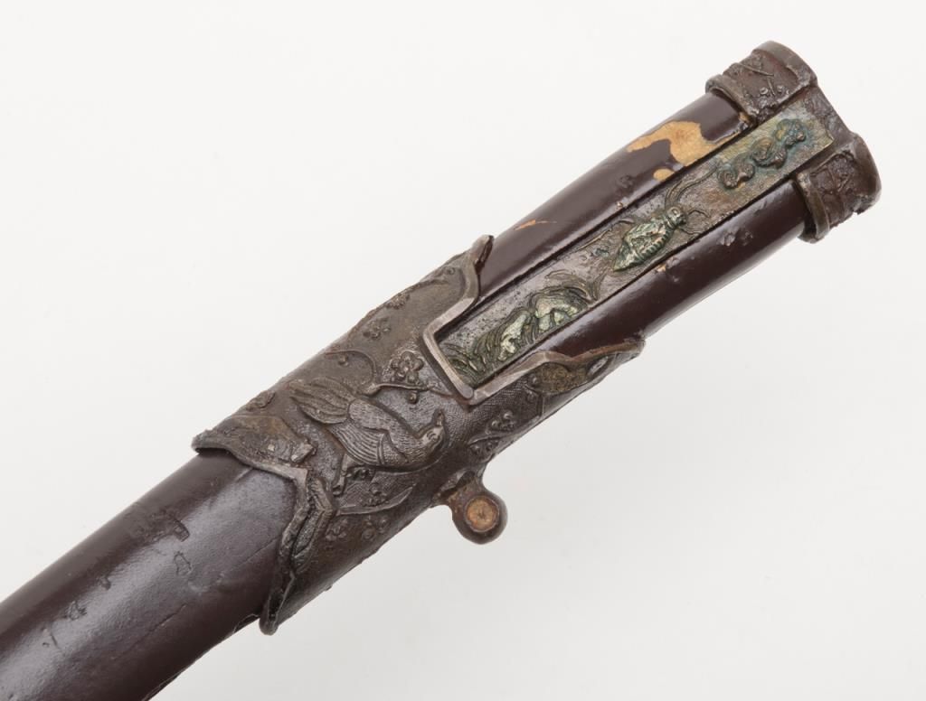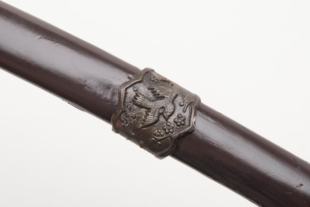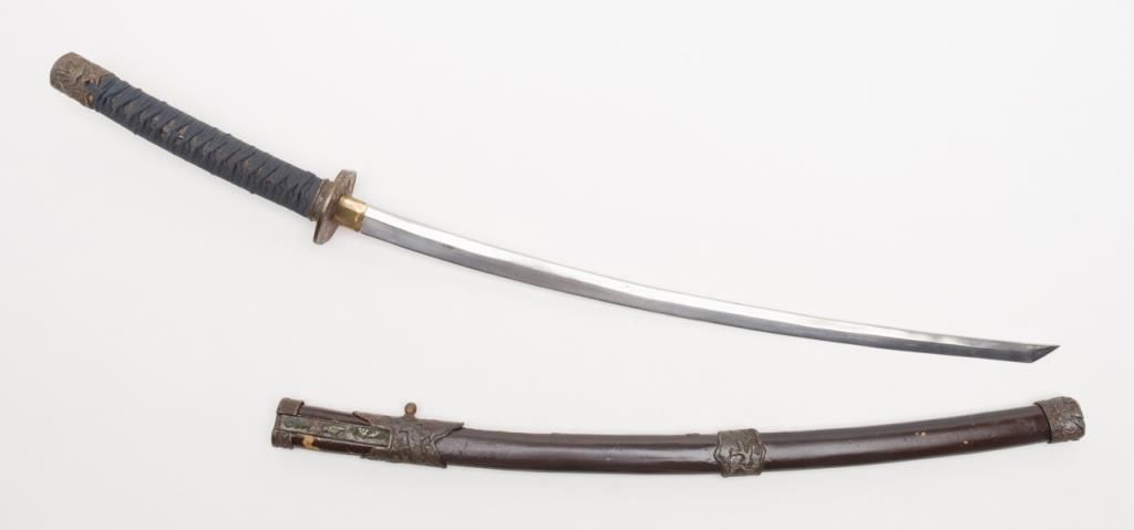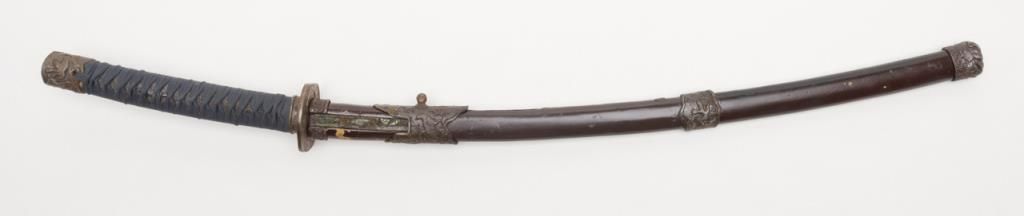 Japanese style sword with scabbard and cast mounts, approx. 43” overall. Est.: $150-$300.