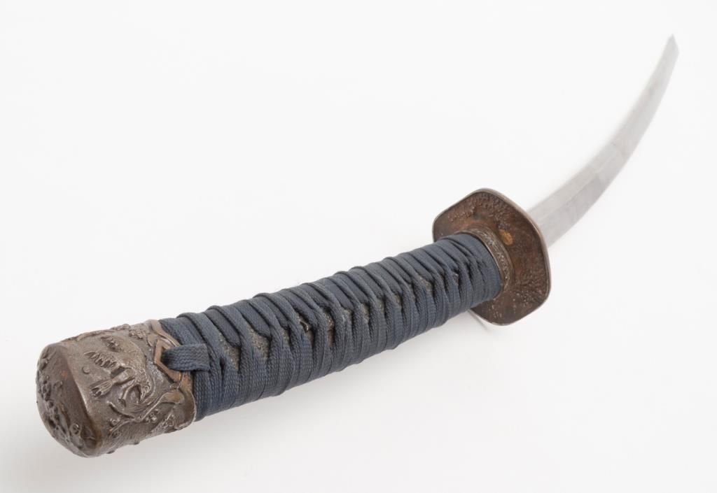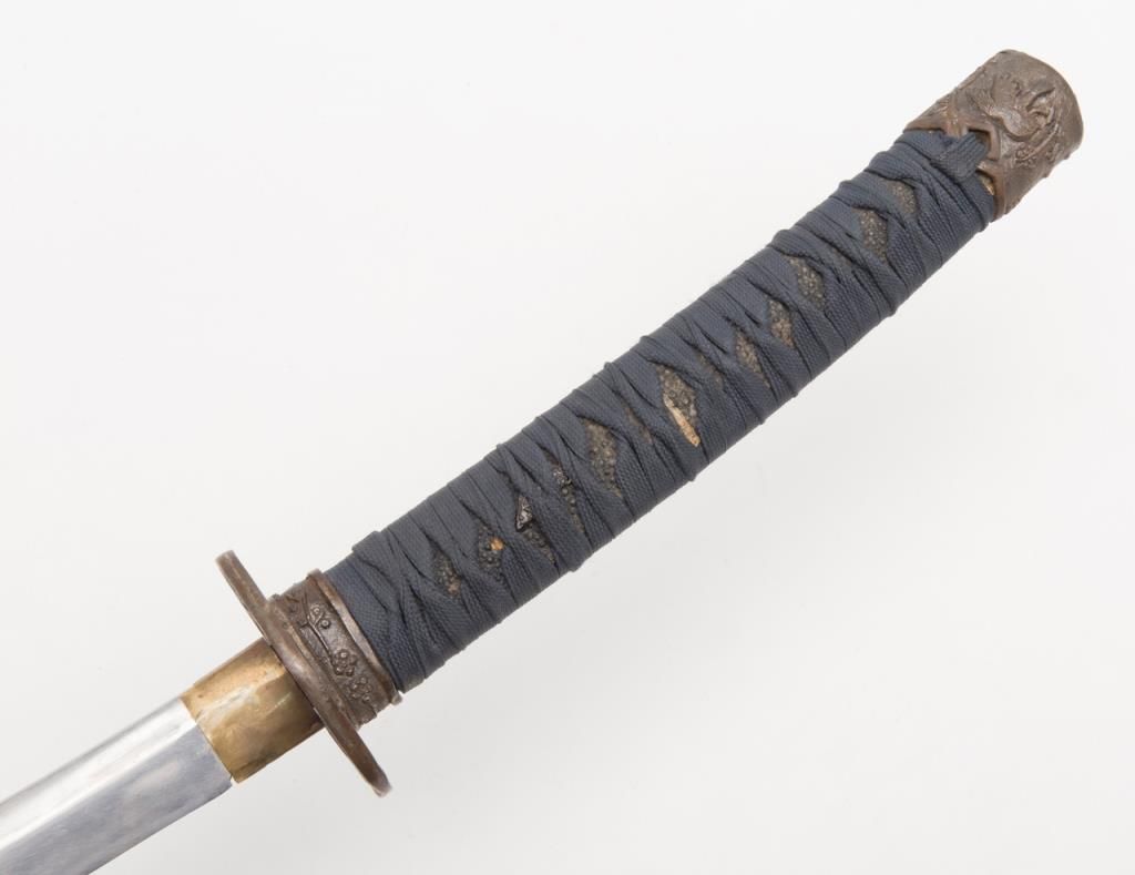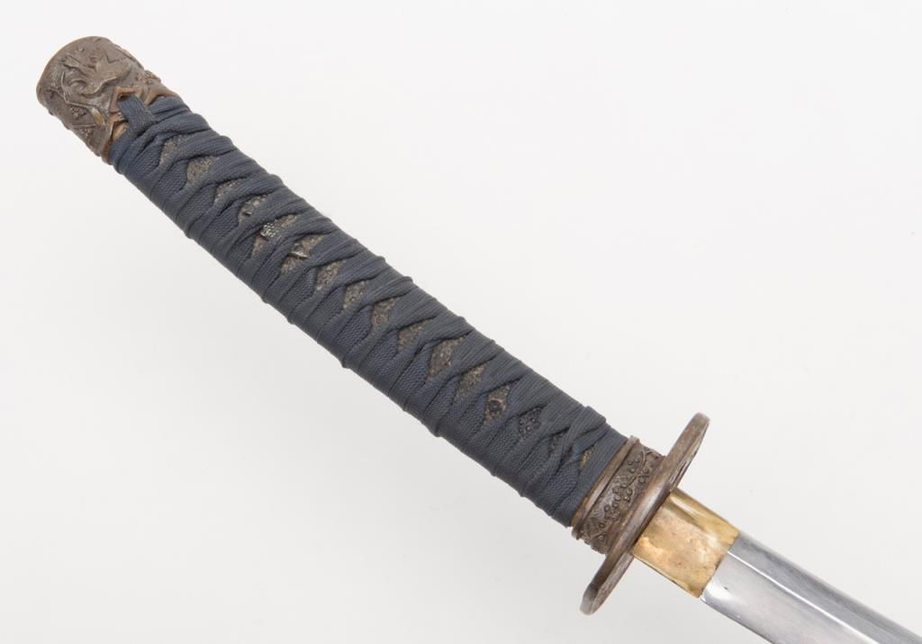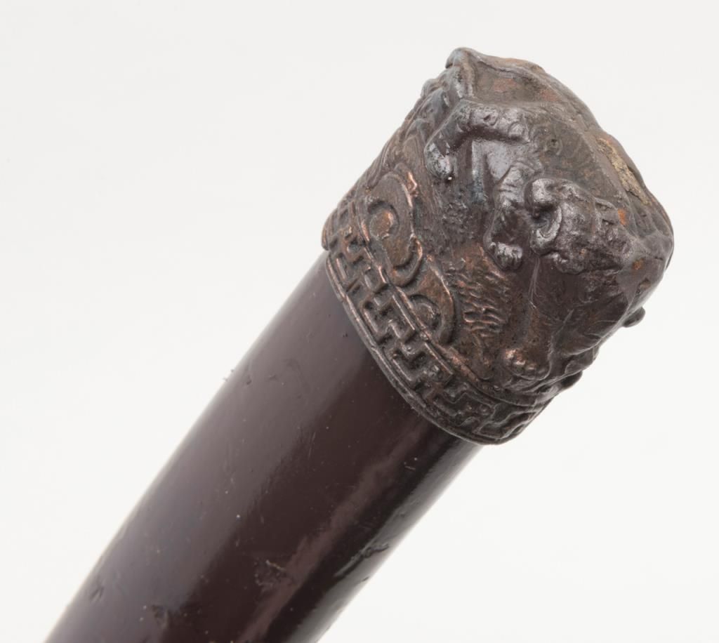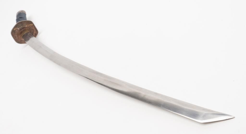 Japanese style sword with scabbard and cast mounts, approx. 43” overall. Est.: $150-$300.