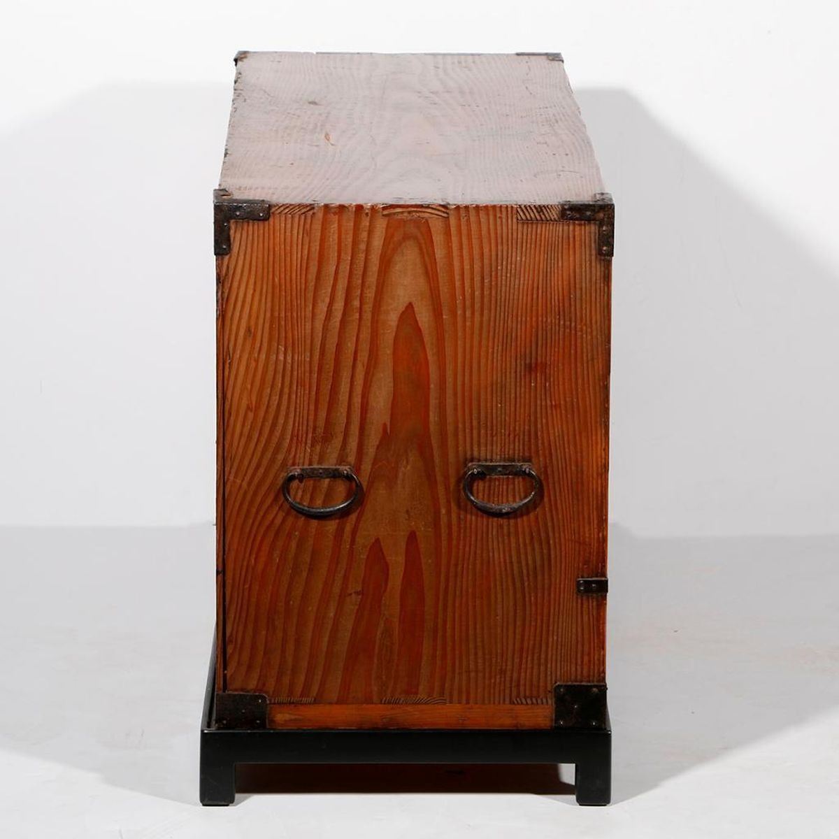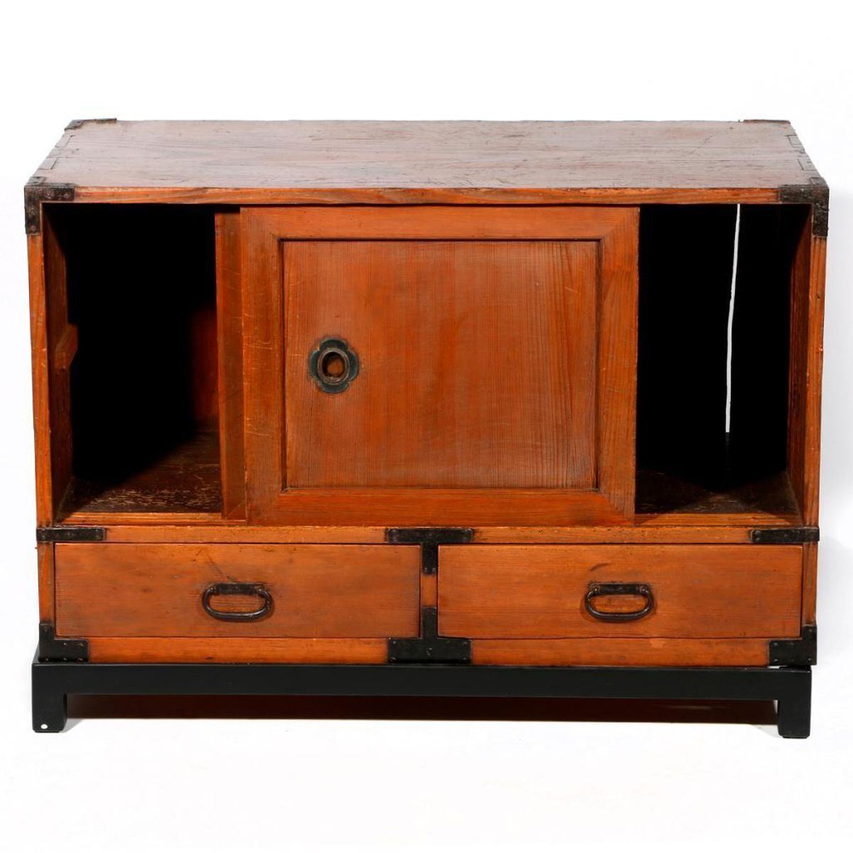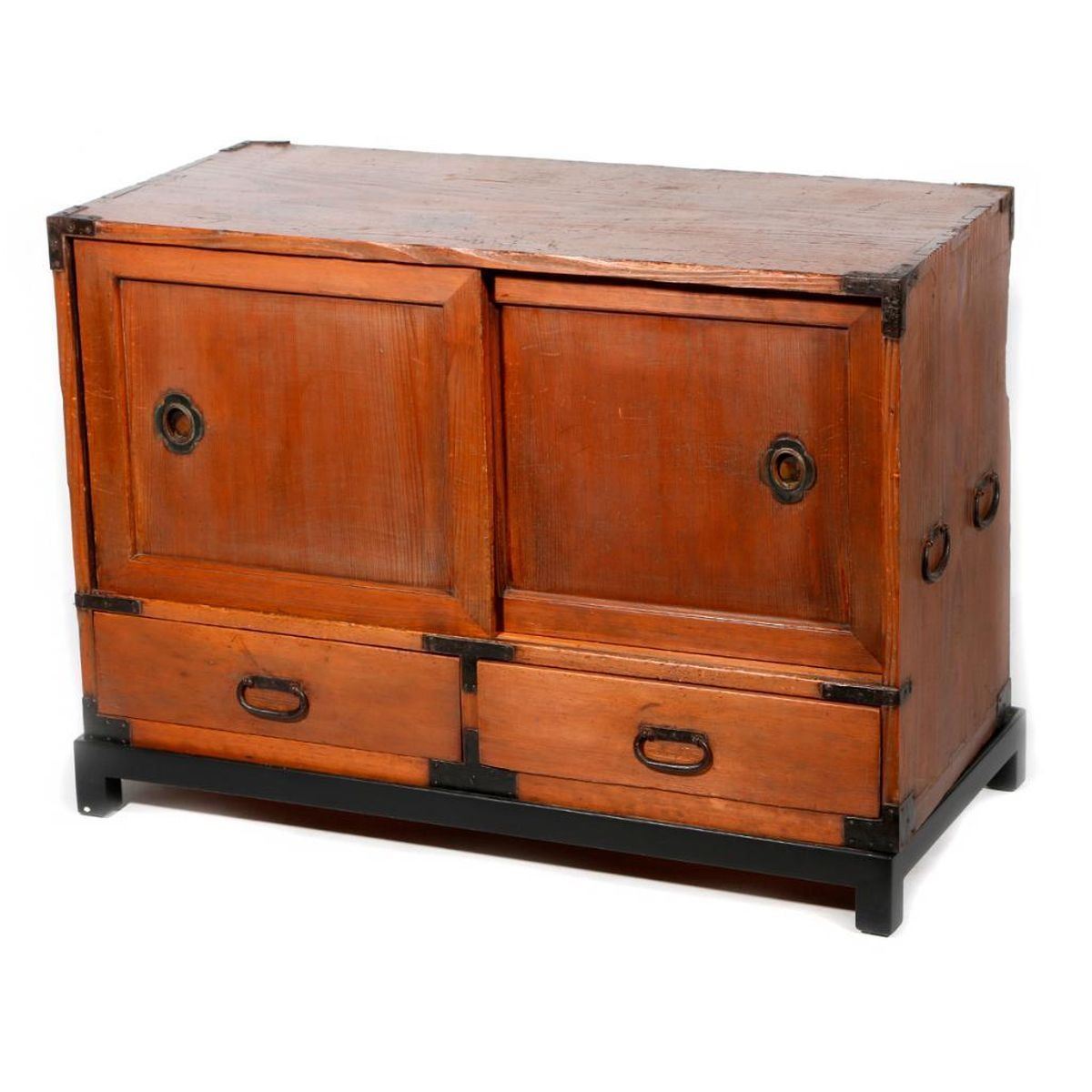 A Japanese tansu cabinet on stand measuring 26 inches high x 36 wide x 16 deep.