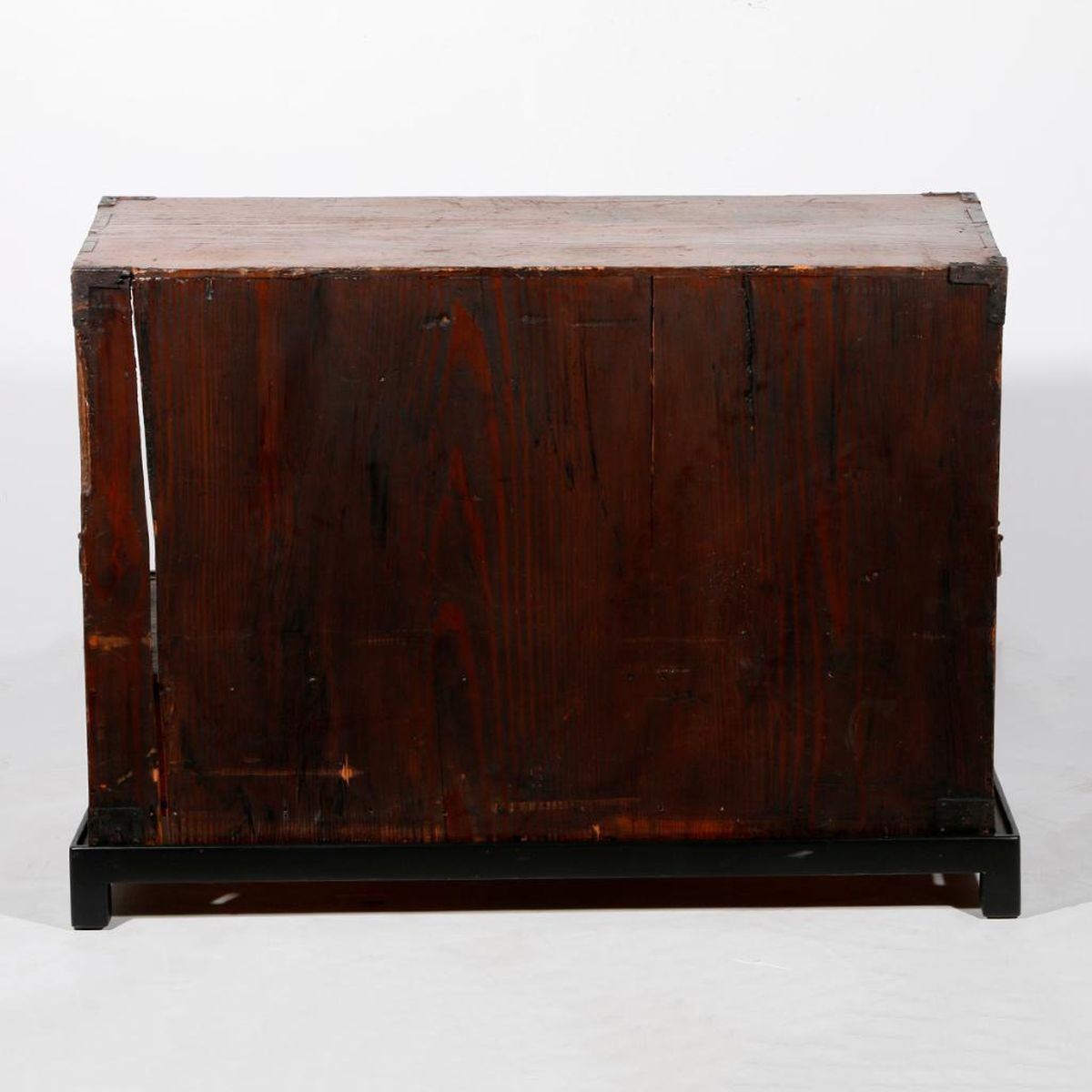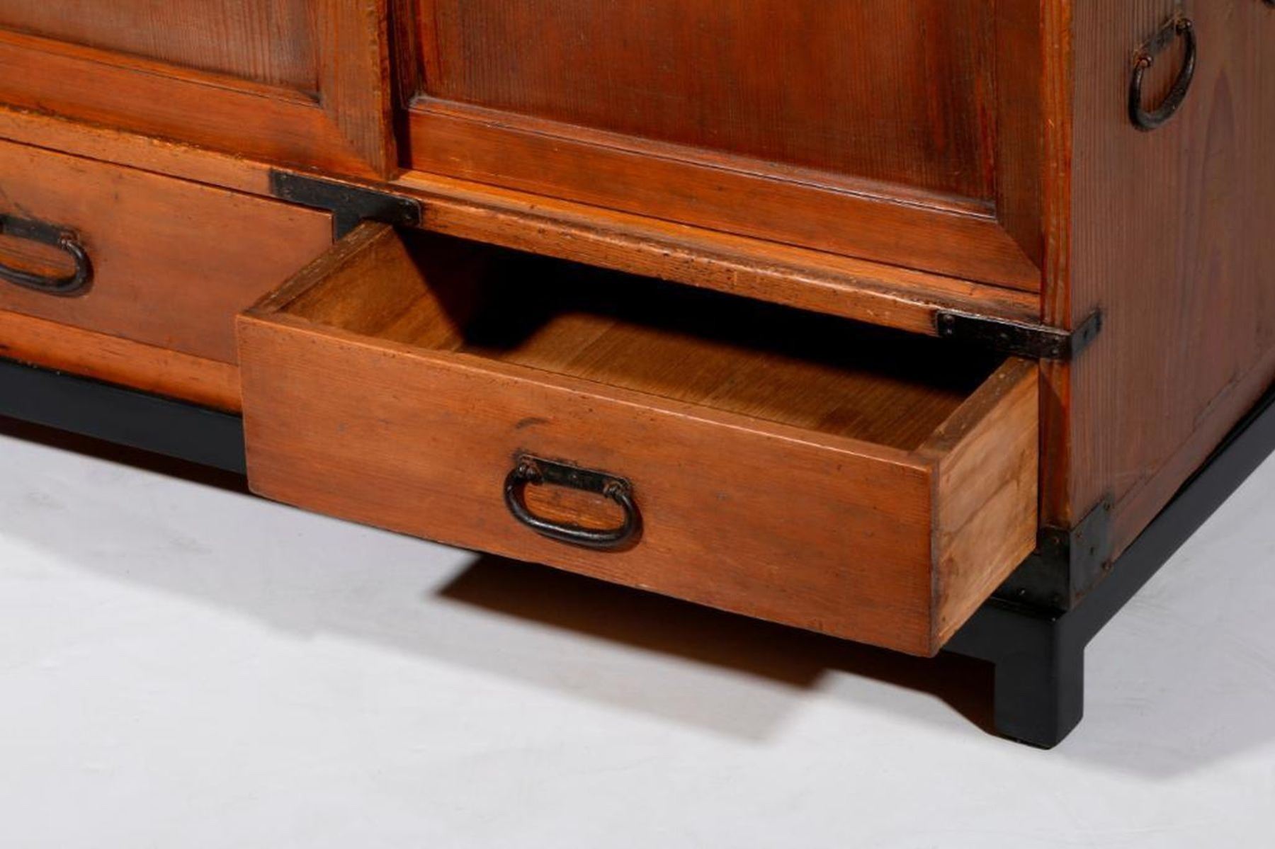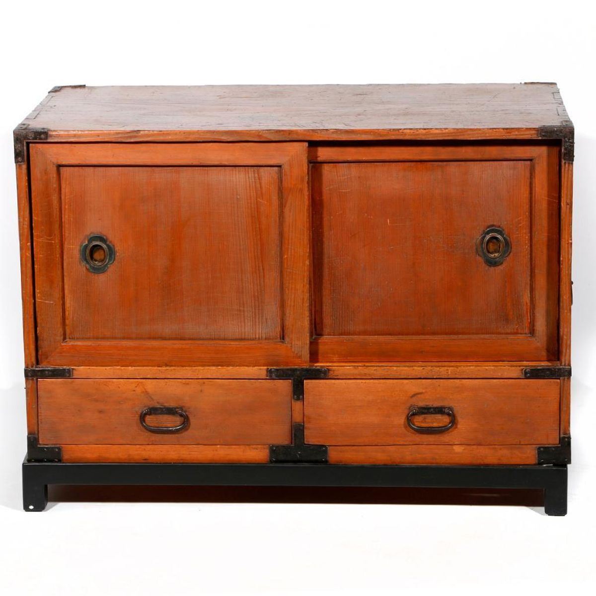 A Japanese tansu cabinet on stand measuring 26 inches high x 36 wide x 16 deep.