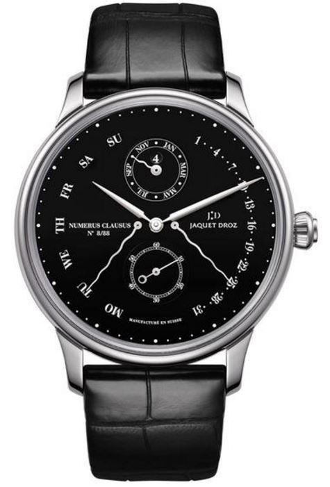 Model: J008334210 - CASE = [Material:18kt White Gold], [Case Diameter:43], [Case Thickness:13.40mm], [Bezel:Fixed], [Case Back:Skeleton], [Water Resistant:30 Meters - 100 Feet], [Crystal:Scratch Resistant Sapphire], DIAL = [Color:Black], MOVEMENT = [Type:Automatic, Perpetual Calendar, Retrograde], [Crown:Push In], BAND = [Clasp:Tang], [Type:Black Alligator Leather], (Usually ships in 2 to 4 weeks.)