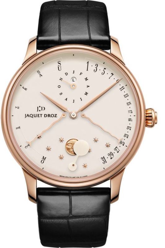 Model: J030533201 - Case,; MATERIAL18KT ROSE GOLD = [Case Diameter43], [Case Thickness13.20mm], [BezelFixed], [Case BackSkeleton], [Water Resistant30 Meters - 100 Feet], [CrystalScratch Resistant Sapphire], Dial,; COLORIVORY = Movement,; TYPEAUTOMATIC, PERPETUAL CALENDAR, MOONPHASE, RETROGRADE = [CrownPush In], Band,; CLASPDEPLOYMENT = [TypeBlack Alligator Leather], (Usually ships in 2 to 4 weeks.)