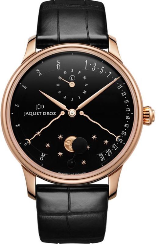 Model: J030533200 - CASE = [Material:18kt Rose Gold], [Case Diameter:43], [Case Thickness:13.20mm], [Bezel:Fixed], [Case Back:Skeleton], [Water Resistant:30 Meters - 100 Feet], [Crystal:Scratch Resistant Sapphire], DIAL = [Color:Black], MOVEMENT = [Type:Automatic, Perpetual Calendar, Moonphase, Retrograde], [Crown:Push In], BAND = [Clasp:Deployment], [Type:Black Alligator Leather], (Usually ships in 2 to 4 weeks.)