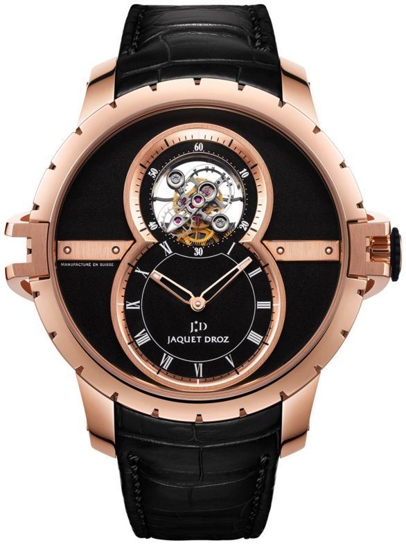 Model: J030033240 - CASE = [Material:18kt Rose Gold], [Case Diameter:45], [Case Thickness:13.93mm], [Bezel:Fixed], [Case Back:Skeleton], [Water Resistant:50 Meters - 150 Feet], [Crystal:Scratch Resistant Sapphire], DIAL = [Color:Black], MOVEMENT = [Type:Automatic], [Crown:Push In], BAND = [Clasp:Folding], [Type:Black Alligator Leather], (Usually ships in 2 to 4 weeks.)