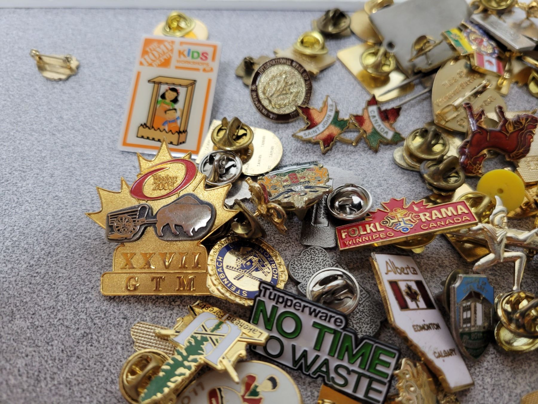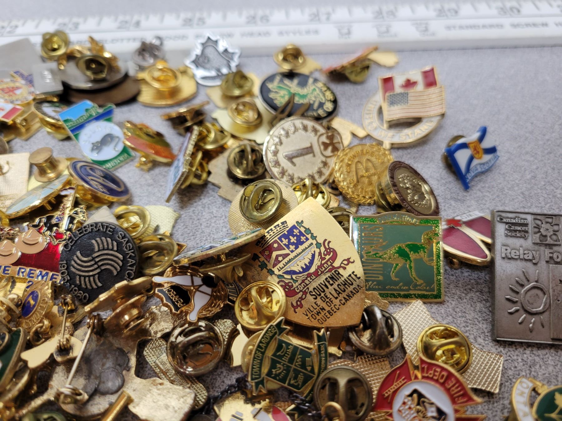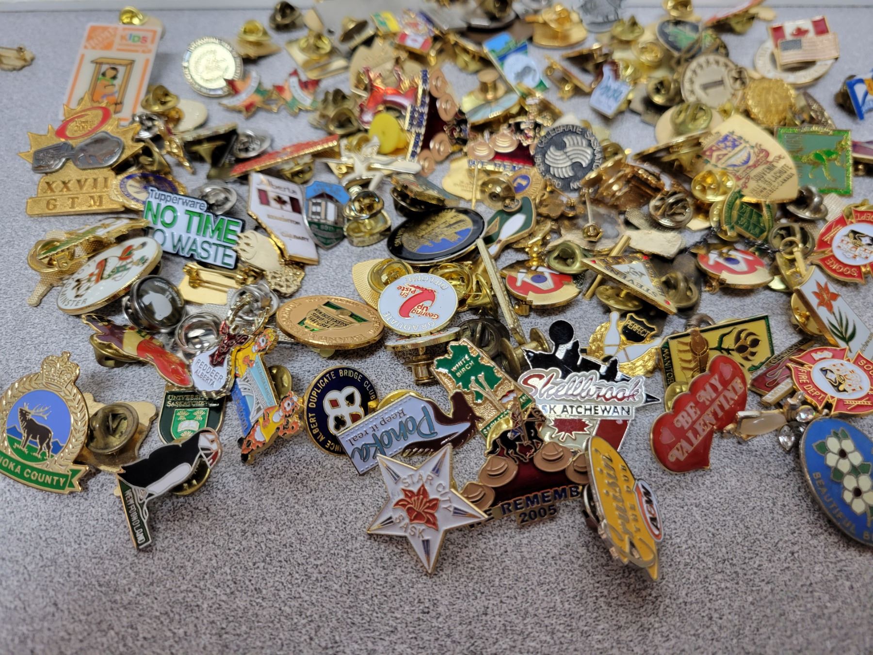 Jar of assorted lapel pins