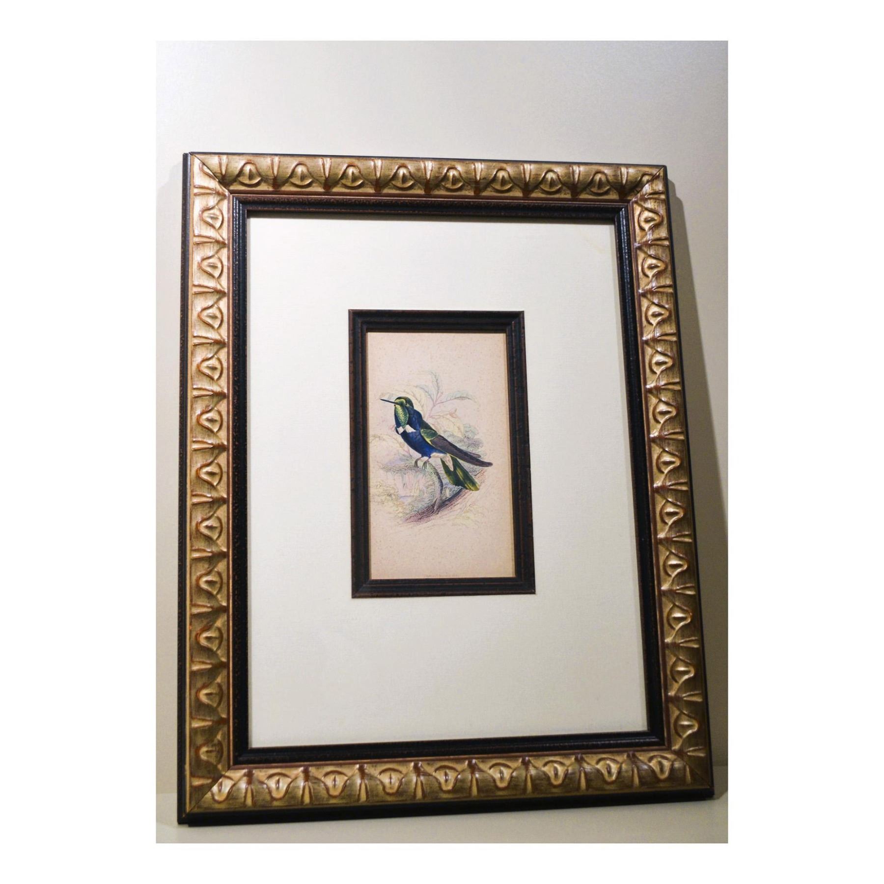 Original Jardine Hand Colored Engraving entitled "Natterers Hummingbird" Circa 1840. Beautifully Hand Colored featuring the vivid blue, green coloration in the Natterers Hummingbird. Custom Matted in Ivory Silk, with A Matching Wood Fillet, Custom Frame in Silver Bronze W/Black Accents. Size: Image: 6.75"H x 4"W. Frame: 18"H x 14.25"W. From the Archival Collection of Re Vann Galleries, G.Reasoner, Owner.