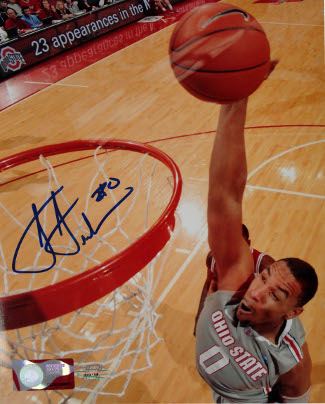 As a sophomore at Ohio State, Jared Sullinger announced at a press conference on April 4, 2012 that he will be leaving school to enter the 2012 NBA Draft. In what would be his final year at Ohio State, Sullinger led the Buckeyes to a 31-8 overall record (13-5 Big Ten). Sullinger averaged 17.5 points and 9.3 rebounds per game during the 2011-12 season. The Buckeyes advanced to the 'Final Four' of the 2012 NCAA tournament, where the team lost to the Kansas Jayhawks. Five days after the loss, the two-time AP All-American declared he was entering the 2012 draft, where he is widely expected among the top picks. Jared Sullinger has hand signed this Ohio State Buckeyes 8x10 Photo. SI Hologram and Certificate of Authenticity.