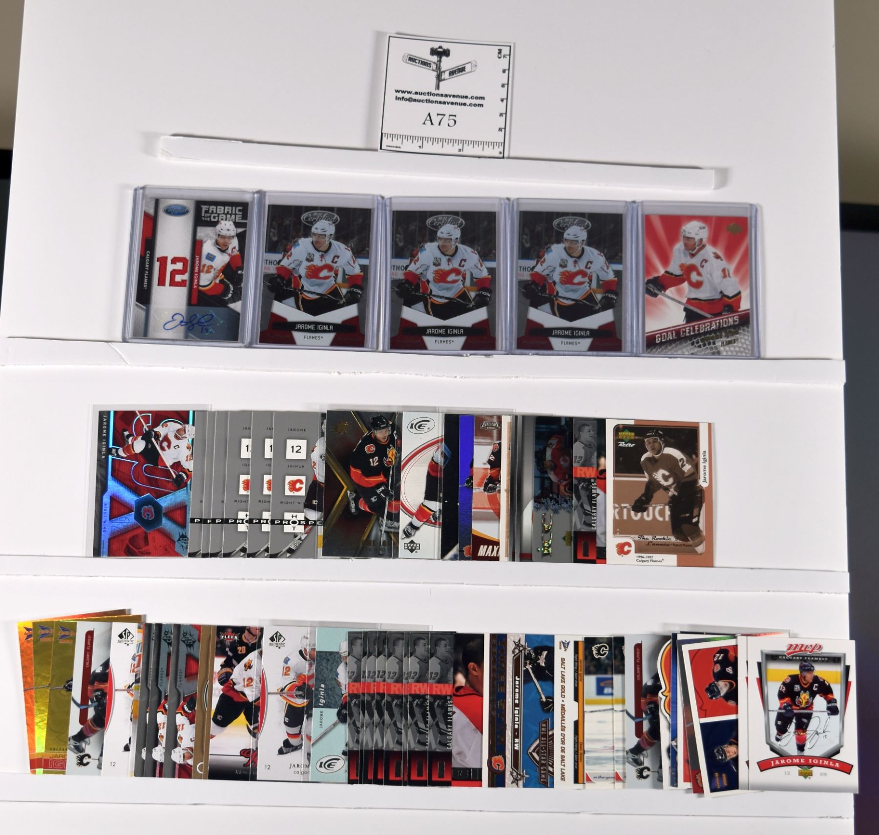 60 Jarome Iginla Cards with Duplicates, including 10-11 Certified Fabric of the Game Auto 02/25, Platinum 3x 062/999, 333/999, 527/999