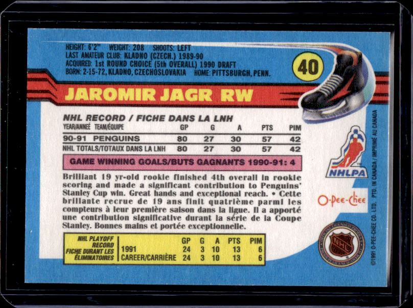 Jaromir Jagr Rookie Card 1991 O-Pee-Chee #40