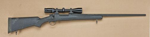 Jarrett custom bolt-action rifle on Remington model 700 action with composite stock, 26” barrel, matte finish, Swarovski 3x10 power scope on rail mounts by Talley with QD detachable sling swivels and Limbsaver hard-rubber butt plate. Right side of barrel is engraved “Precision Predator”, serial #18. A very high grade and precision rifle that is world-class. From the Robert Petersen Collection. Est: $1,500 - $3,000