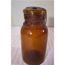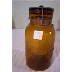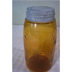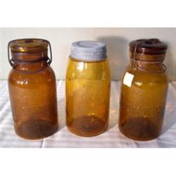 Two amber glass top lightning jars and one amber Mason's zinc top jar; All good condition, no chips or cracks