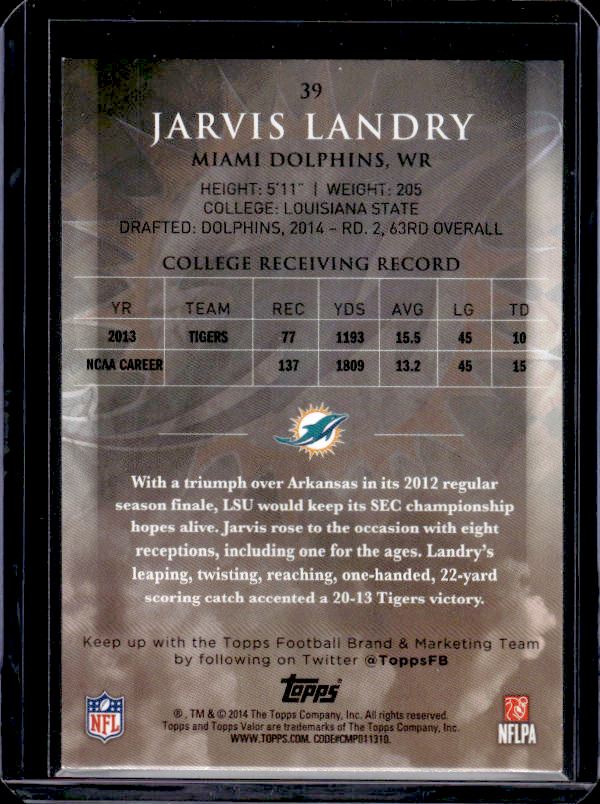 Jarvis Landry Rookie Card 2014 Topps Valor Speed #39