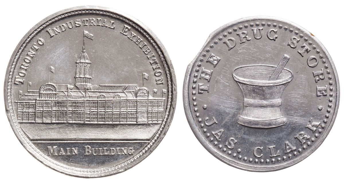 Lr#995l, Wm, 2.1 gms, 29mm, EF, edge clip; Toronto Industrial Exhibition, Exhibition Souvenir, 1886, Lr#1512. CH# EONS-114, Wm, 12.9 gms, 31mm, Unc. Total of two (2) pieces.