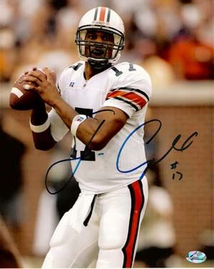 As a starter with the Auburn Tigers Jason Campbell found success in his senior year when he led the Tigers to an undefeated season in 2004 and was named the SEC Player of the Year and MVP of the SEC Championship Game. Jason Campbell has hand autographed this Auburn Tigers 8x10 Color Photo. Famous Ink Hologram and Certificate of Authenticity from Athlon Sports. 2005 First Round Draft pick by the Washington Redskins.