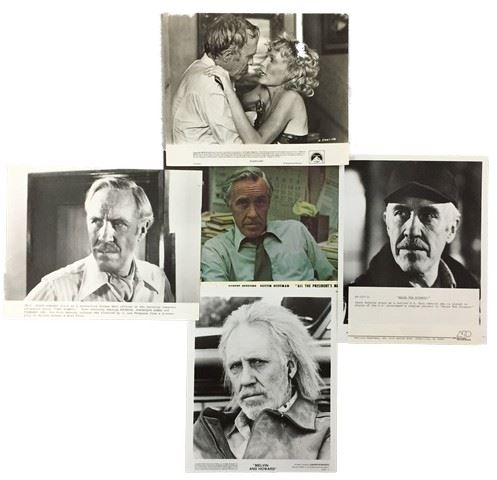 Jason Robards, a rare collection of black and white and color publicity photographs (5) (ca. 1979-1980). The movie stills are from All the President’s Men, Cabo Blanco, Hurricane Melvin and Howard and Raise the Titanic. One photograph is of Mr. Robards with Mia Farrow. Some photographs have editorial descriptions, dates, credits and marks. (8” X 10”)