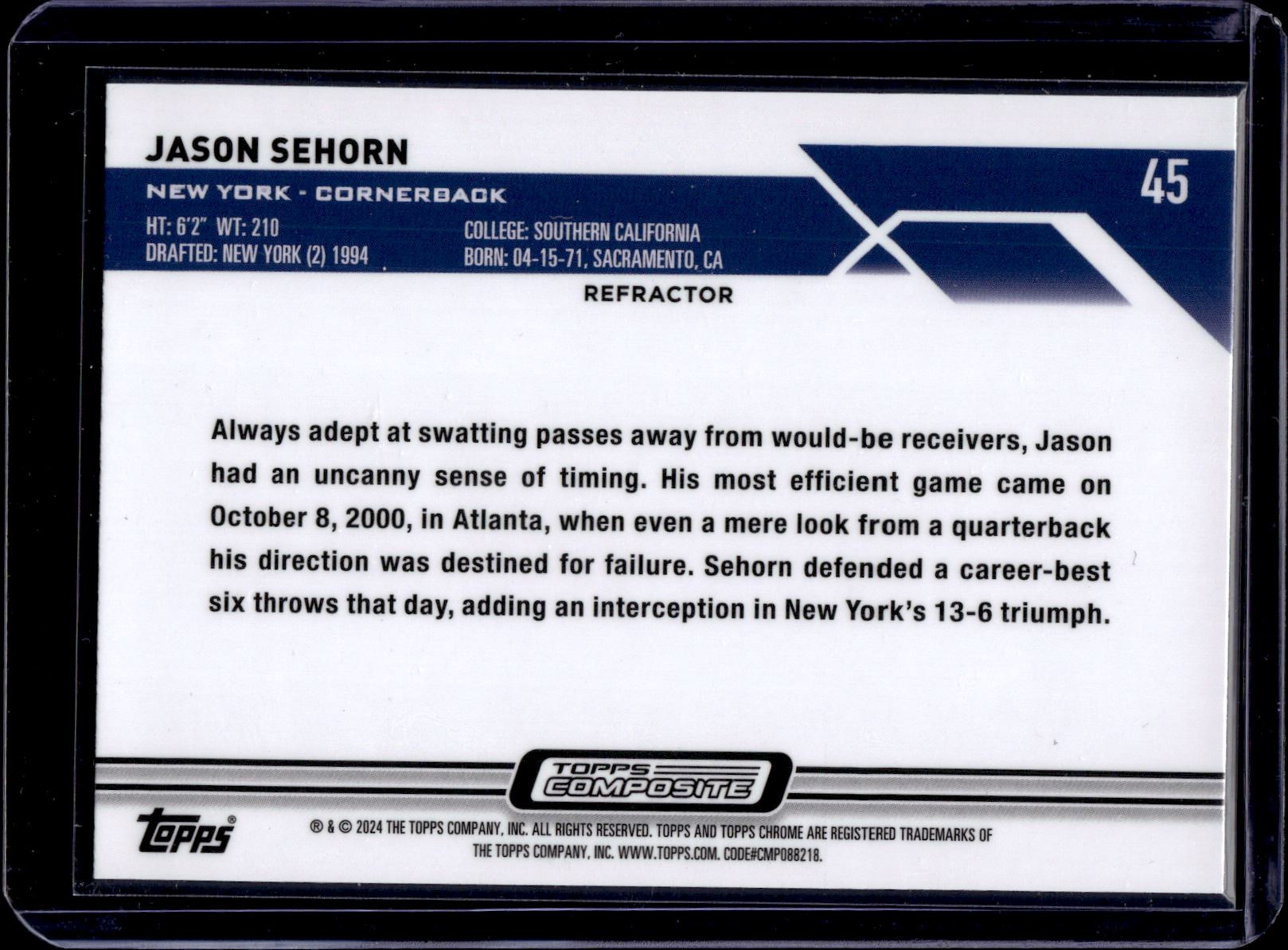 Jason Sehorn Topps Chrome Refractor 2023 Topps Composite #45