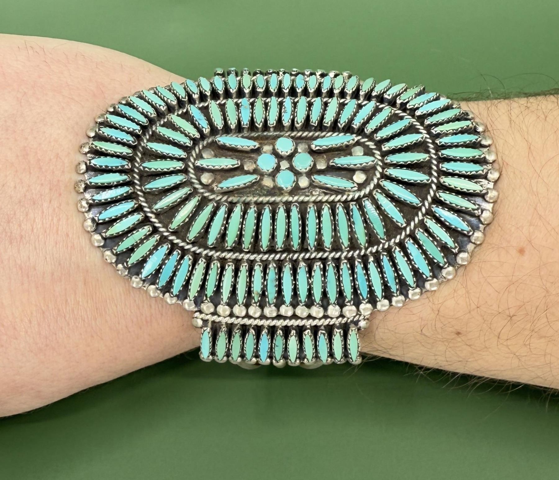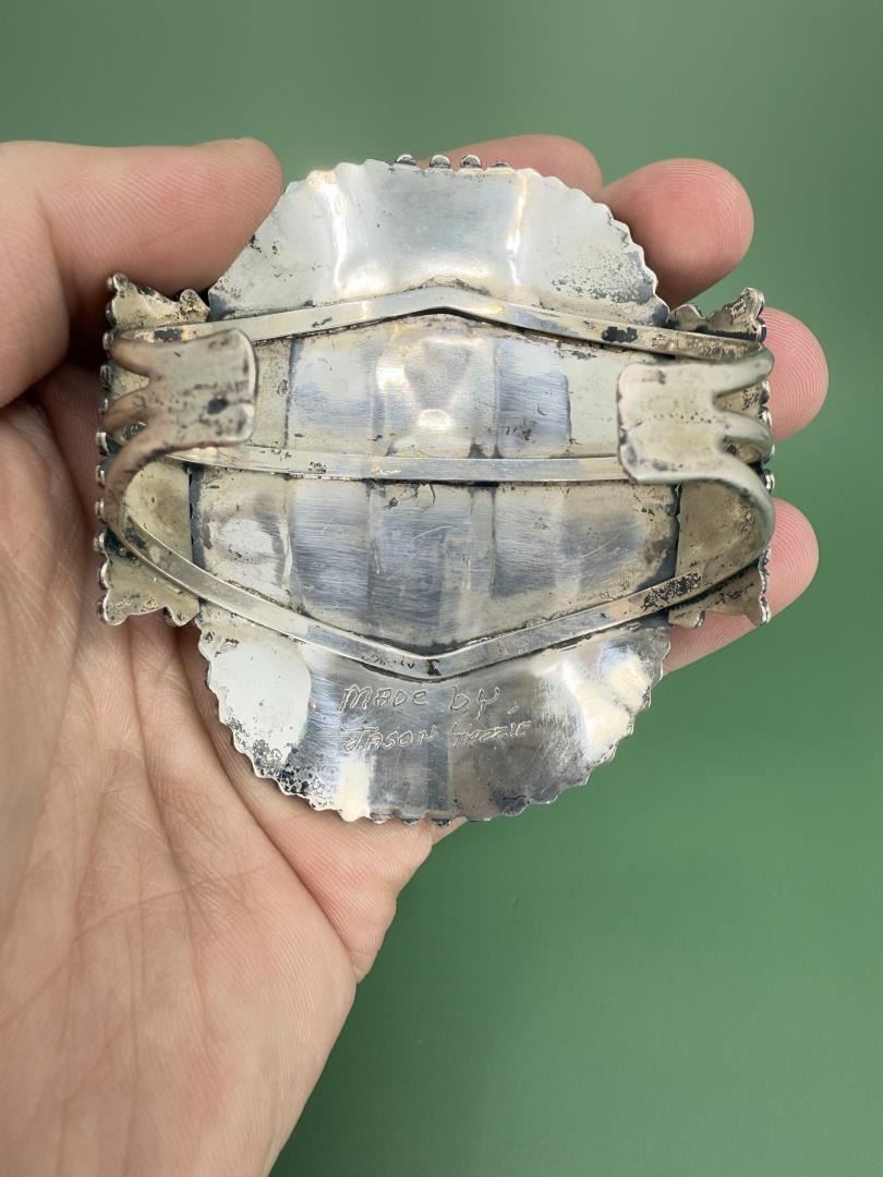 Phenomenal Old Pawn Sterling Silver Bracelet Made by Jason Yazzie. 3" by 3" by 2". 76.3 grams.
