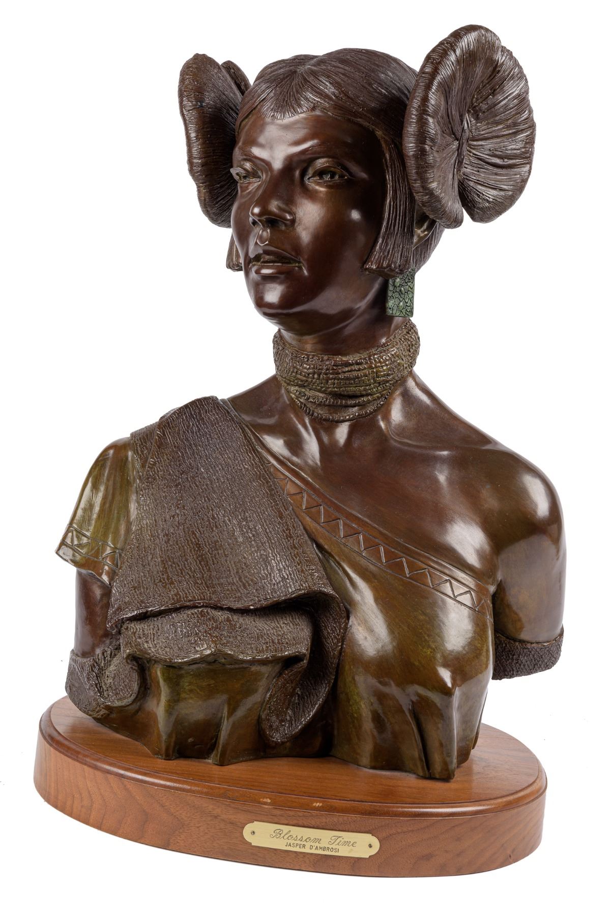 Condition details: This bronze piece is in very good condition. The wood base is in very good condition. With the unaided eye there are no apparent issues. Goldplate: Blossom Time, Jasper D’Ambrosi