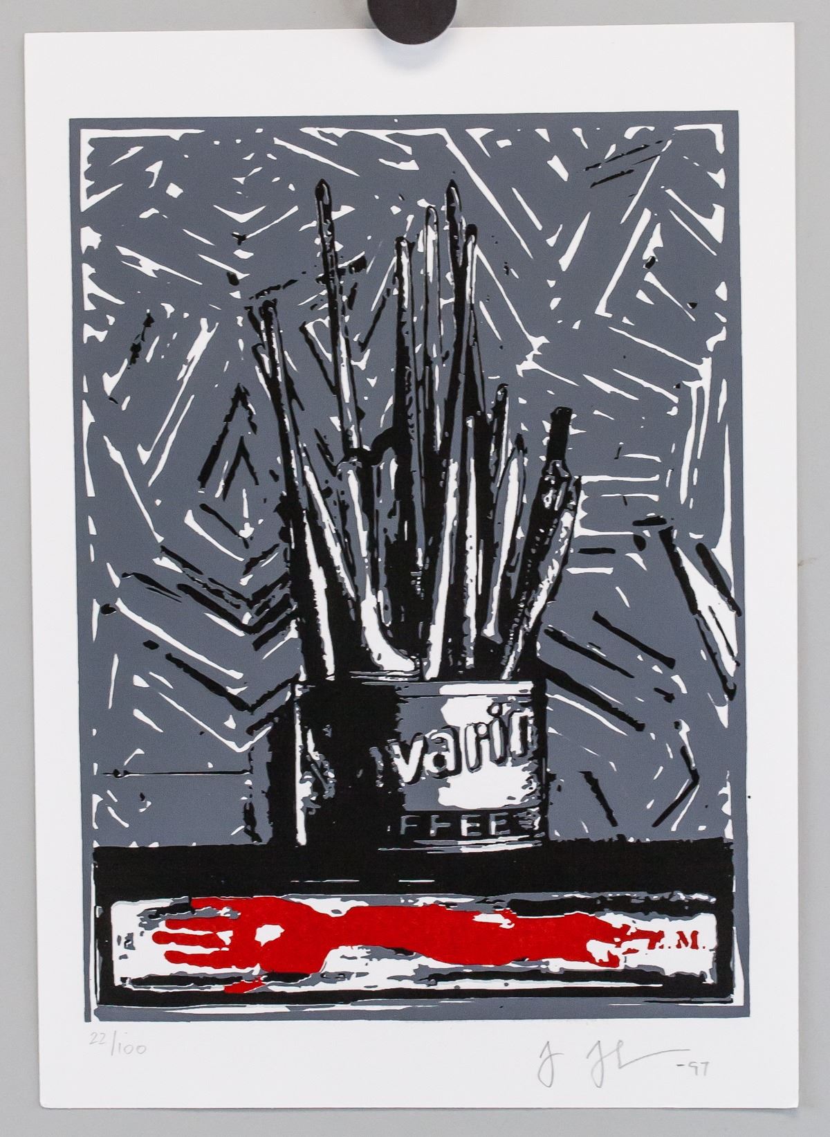 Silkscreen on paper. Featuring still-life. Signed "J Johns" in the bottom right corner, with "97" inscribed beneath the signature. "22/100" inscribed to the bottom left corner. "XIII" inscribed on verso. "INTERNATIONAL IMAGES NEW YORK" stamped on verso. Attributed to Jasper Johns (1930- , American). 30 x 21 cm (11.75 x 8.5 in). Provenance: This lot carries limited provenance from a Southern Ontario estate.