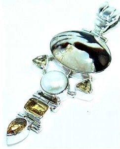 Silver and Jasper, Pearl & Citrine Pendant. Allow 6 to 8 weeks for delivery.