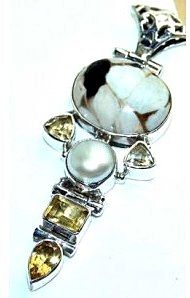 Silver and Jasper, Pearl & Citrine Pendant. Items are hand made as ordered so please allow 6 to 8 weeks for delivery.
